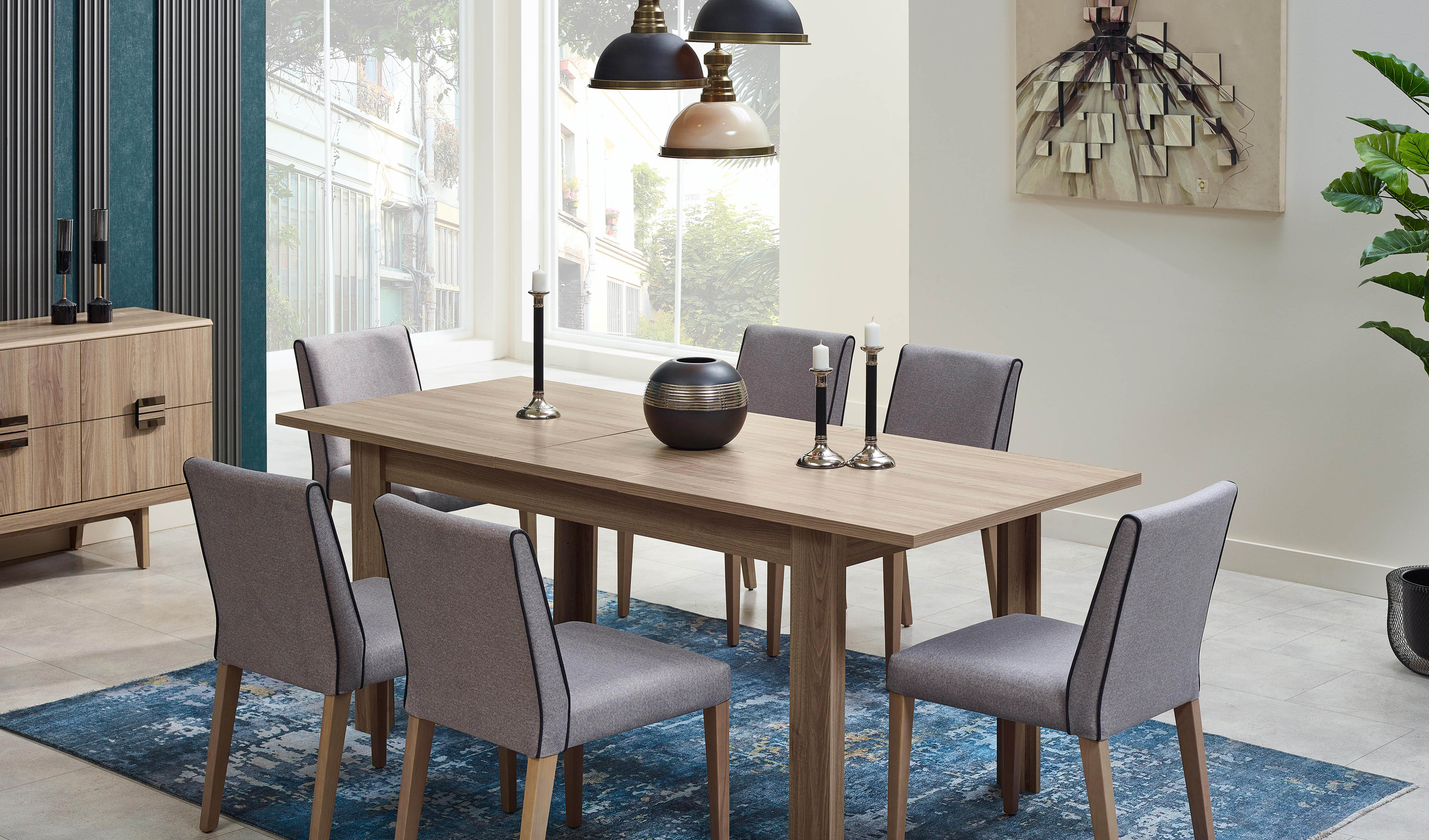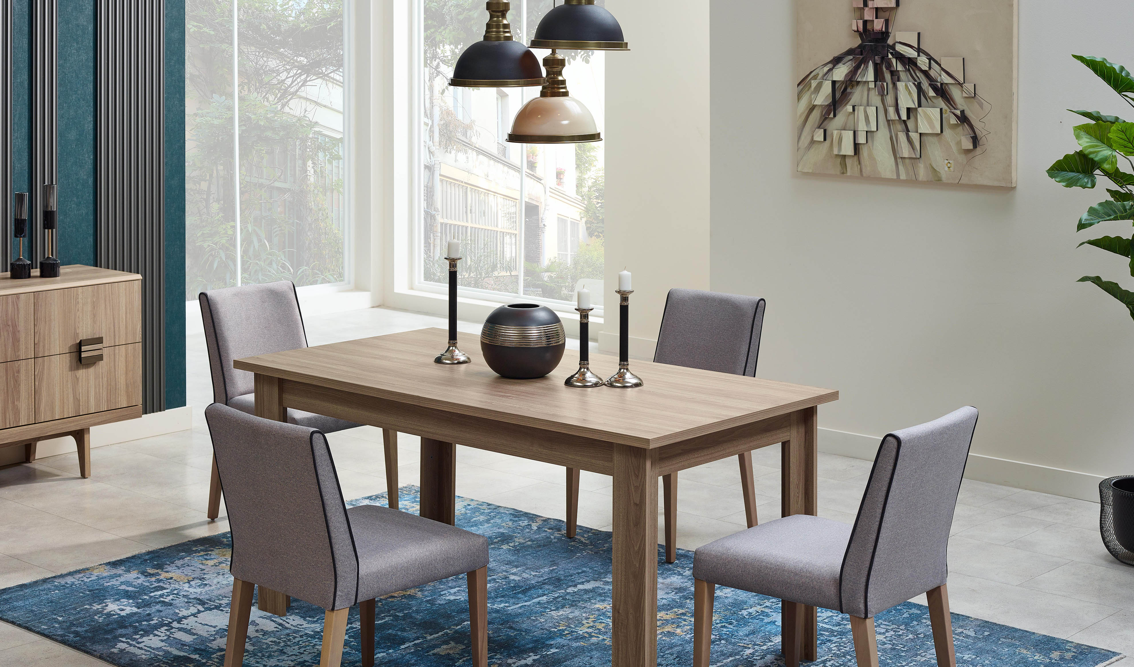 Sabit ve açılır masa seçenekleri esneklik sunarken, yüksek ayak yapısı temizlik kolaylığı sağlıyor. Ahşap ayaklı sandalyeler ve yavaşlatıcılı menteşe mekanizması, konfor ve uzun ömürlü kullanım sunuyor.