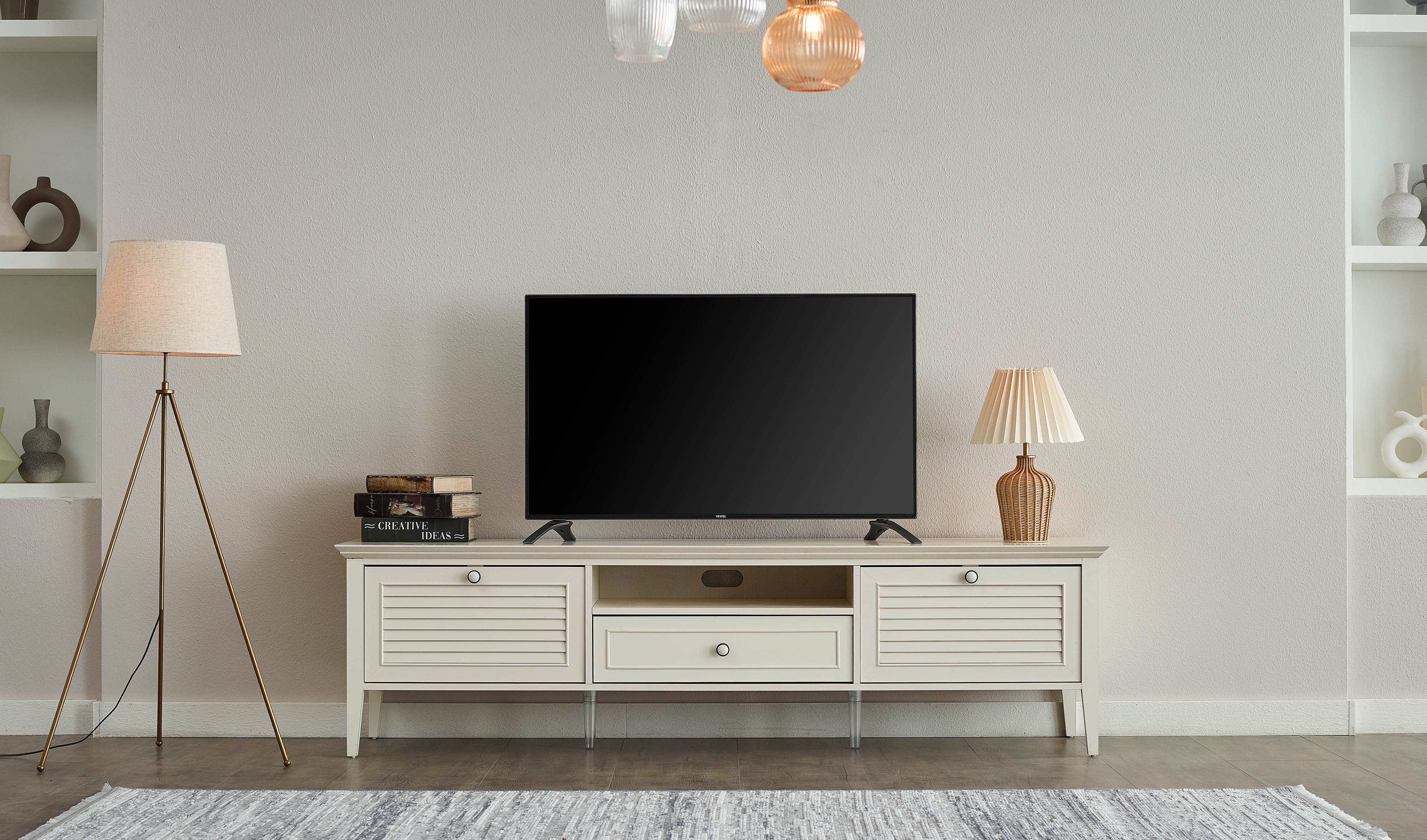 Esila TV Ünitesi, modern şıklığı ve işlevselliği bir araya getiriyor. Mat aytaşı rengi ve özel ayak tasarımıyla estetik bir görünüm sunarken, dekoratif profil uygulamalarıyla dikkat çekiyor. Yavaşlatıcılı mekanizmaları ve yüksek ayak yapısıyla kullanımı kolaylaştırırken, çevre dostu malzemelerle de sağlığınızı koruyor.