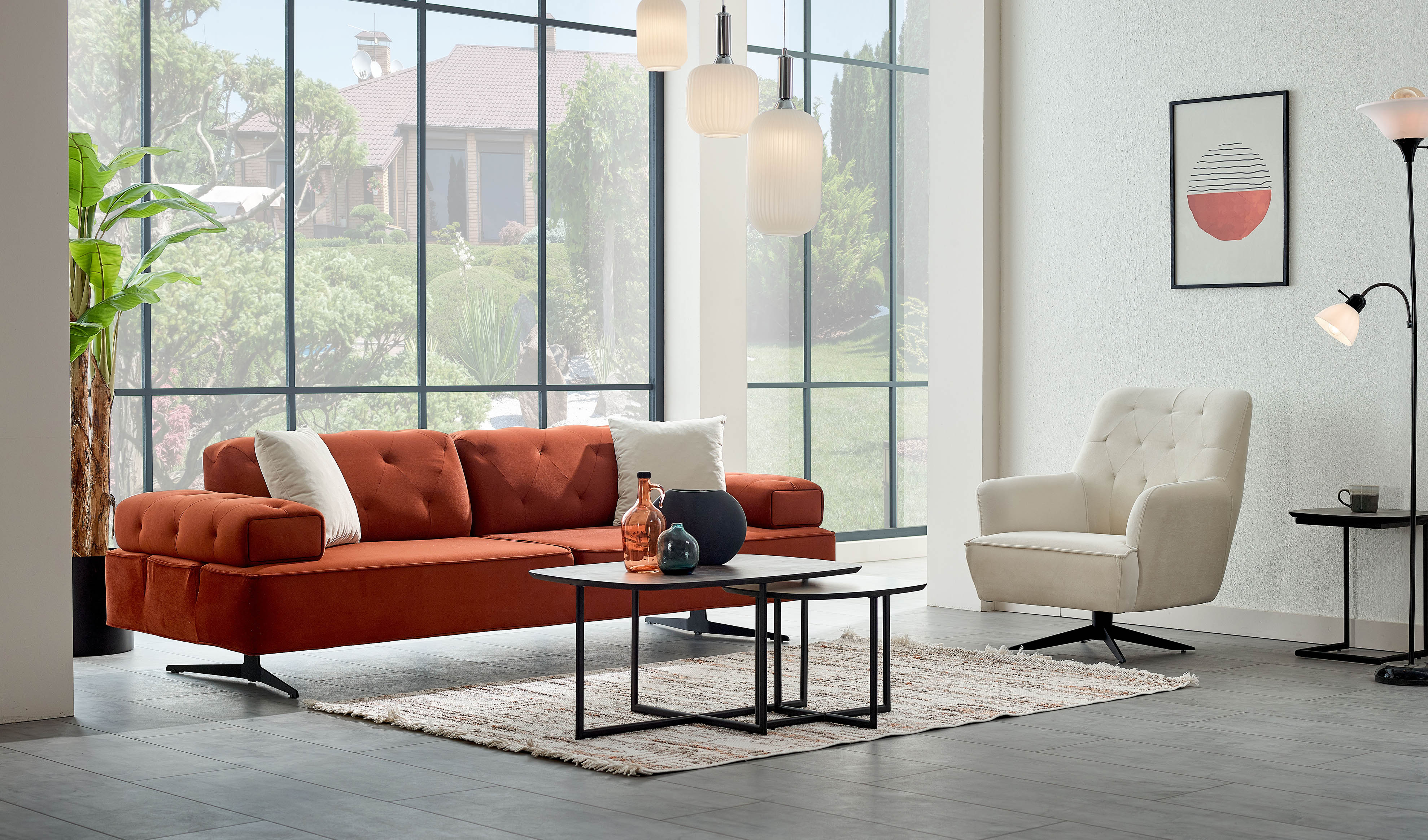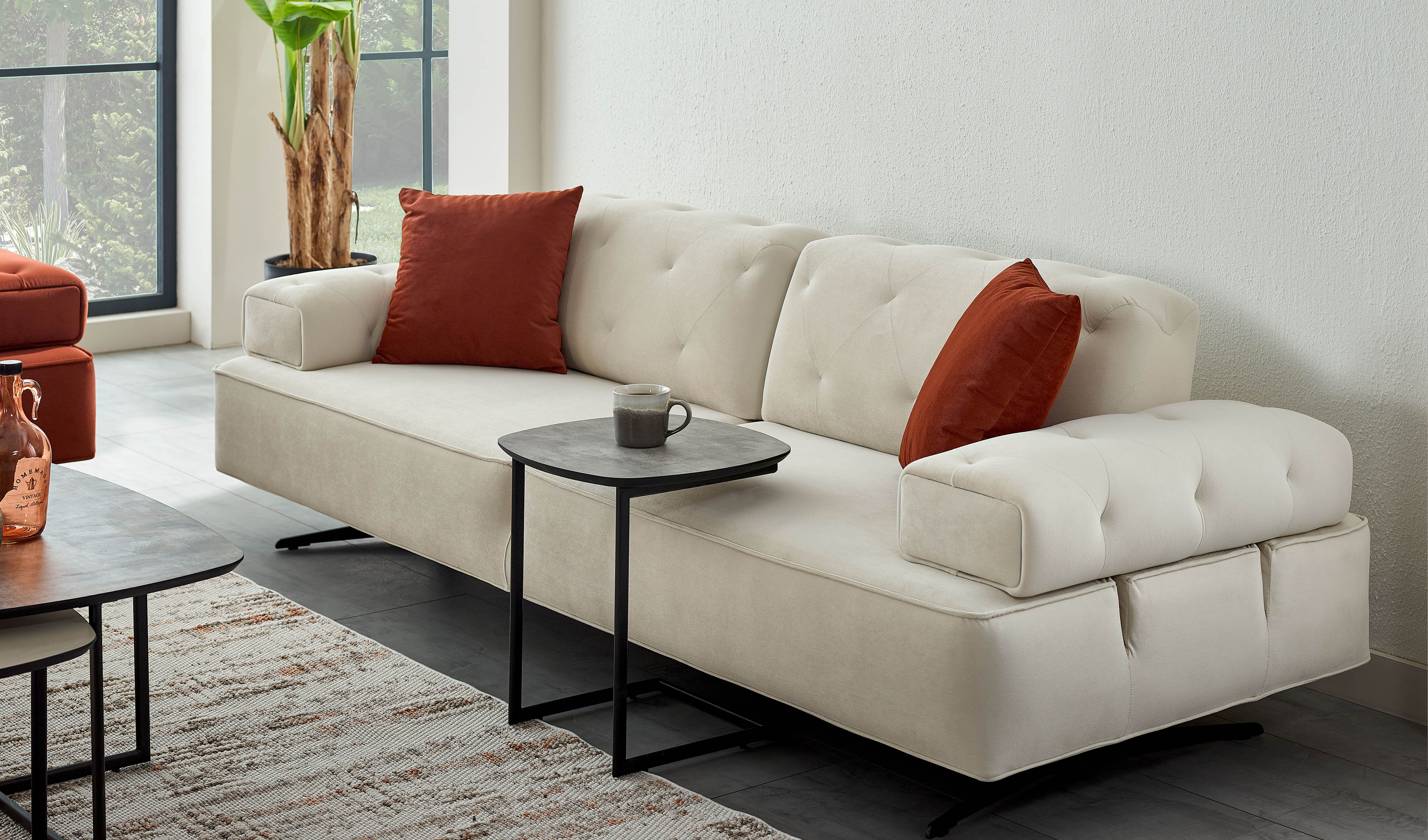 Fabius Koltuk Takımı, yaşam alanlarınıza konforu ve işlevselliği yenilikçi bir dokunuşla getiriyor. Kolay temizlenir örme kumaş sayesinde hem pratiklik hem de şıklık ön planda tutulurken, sırtta ve kolda geriye ve yana açılır mekanizma ile ekstra alan sunan tasarımı, her anı daha verimli hale getiriyor. Üstelik, kolda ve sırtta ters çima uygulaması detaylara gösterilen özeni simgelerken, metalik yüksek ayak modern çizgilerle mekânınıza ferahlık katıyor. Son olarak, lastik kolon ve katmanlı sünger yapısı uzun ömürlü konfor ve dayanıklılığı garanti ediyor.