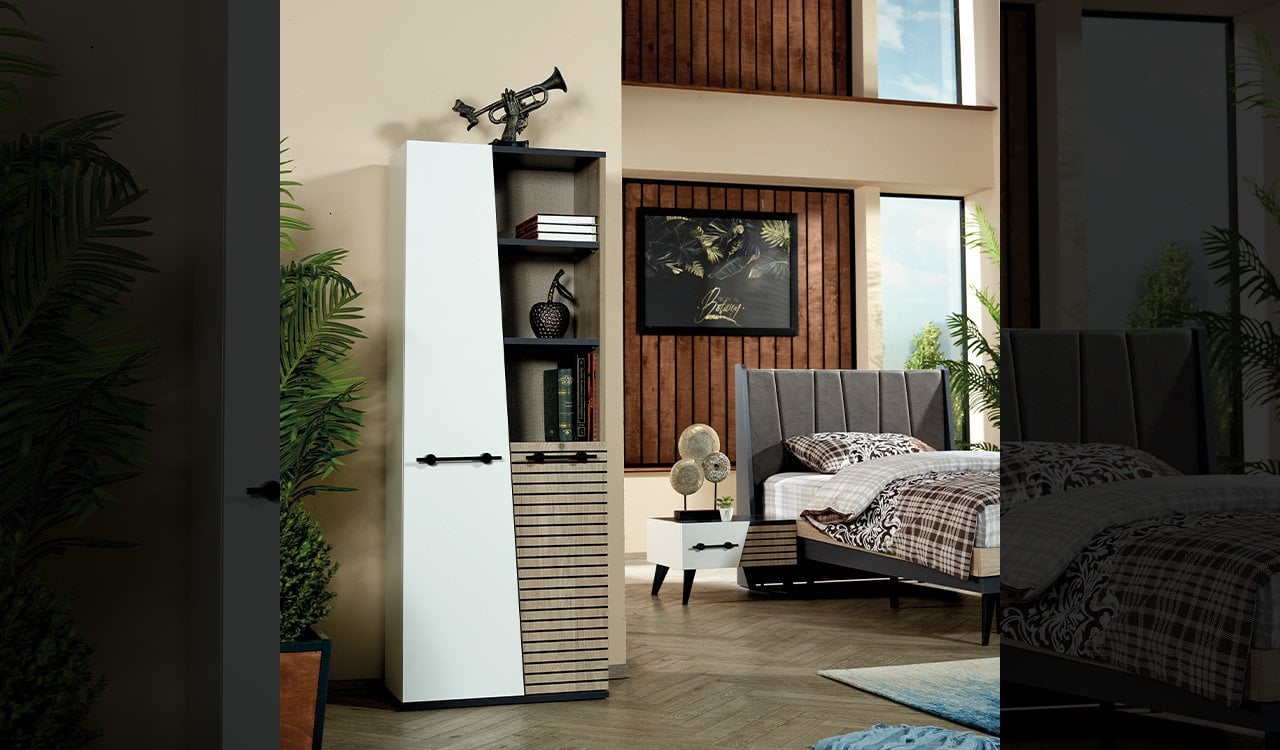 Odanla farkını ortaya koymak istiyorsan, Goya Genç Odası tam senin tarzına göre! Kendine özgü modern ve şık tasarımı ile genç ruhunu yansıtırken, ister ders çalışırken ilham al, ister kendi dünyanda dinlen – Goya hep yanında. Calipso, beyaz ve antrasit renk kombinasyonu, odana sofistike bir hava katarken, takıma özel üçgen ayak ve metal kulp uygulaması ile her detayda şıklığı hissettiriyor.