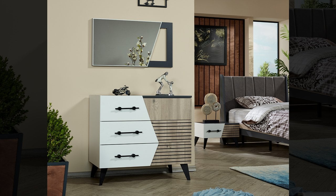 • Şifonyerde düz renk ayna uygulaması