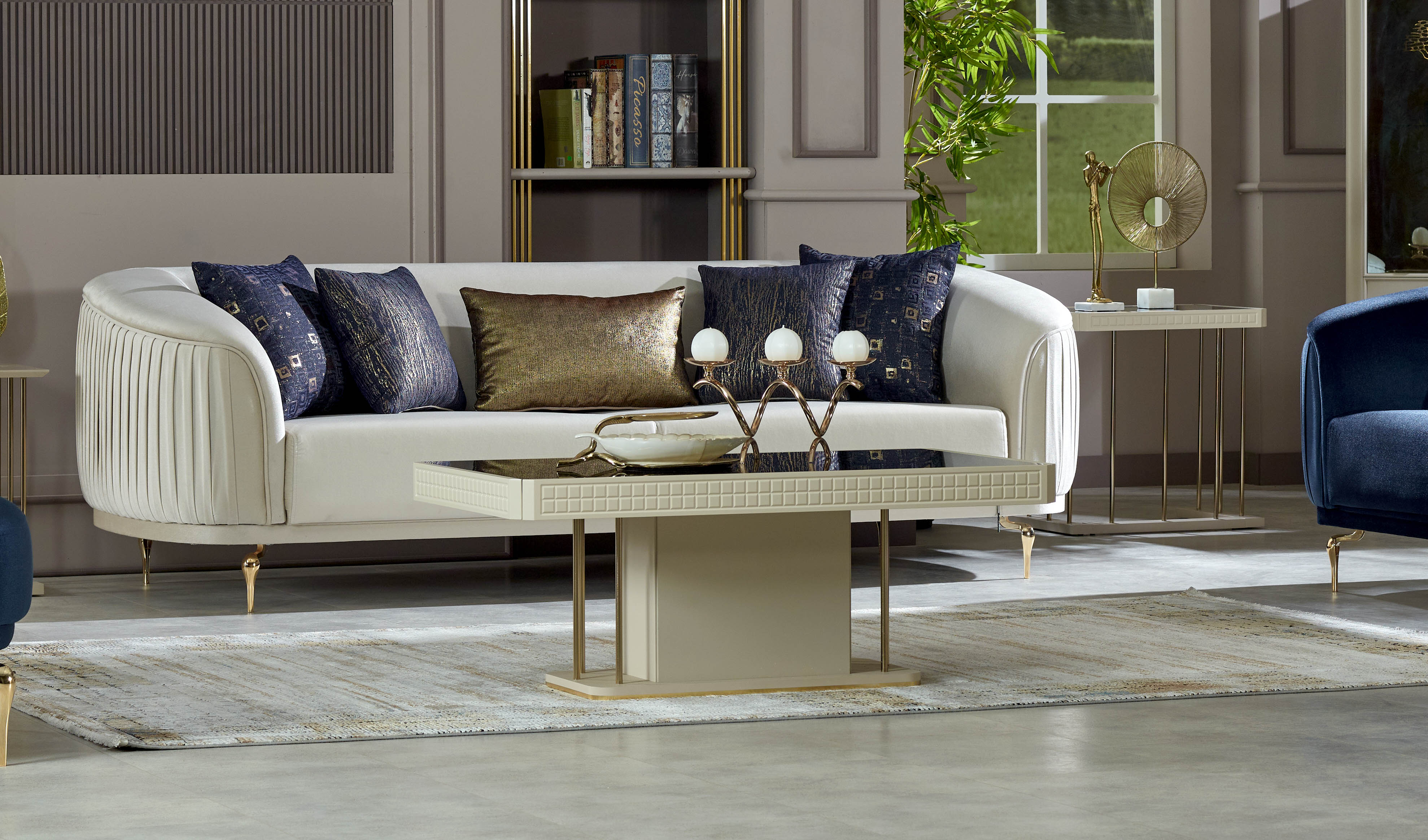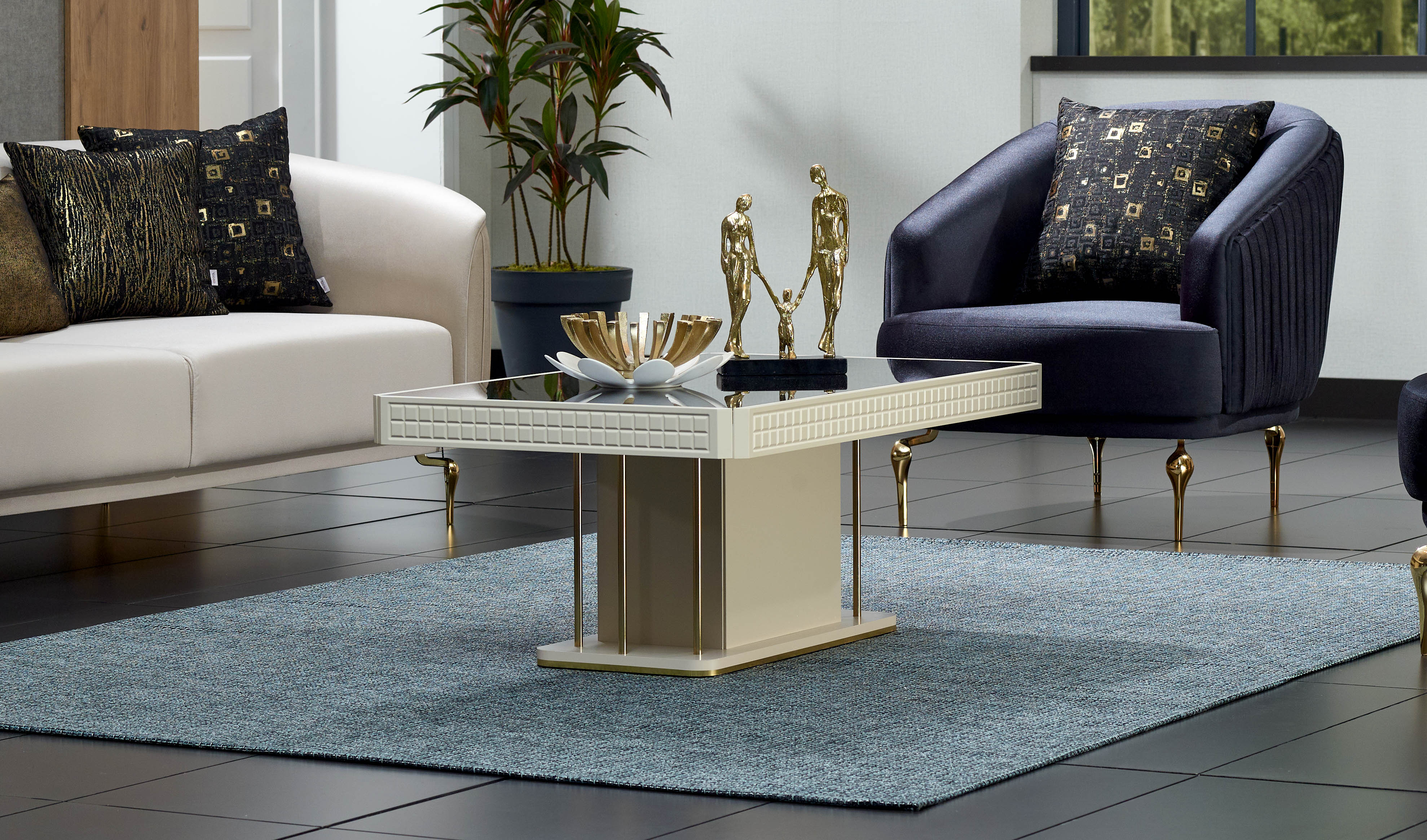 Helenka Sehpa, vizon bej ve gold renk kombinasyonu ile evinize sofistike bir hava katacak. Ayna uygulamaları, CNC işlemeli desen uygulaması ve gold metal ayak detaylarıyla estetik açıdan dikkat çekerken, kolay temizleme ve taşıma özellikleri ile kullanım kolaylığı sunuyor. E-1 kalite standartlarına uygun malzemeler kullanılarak üretilen Helenka Sehpa, fonksiyonellik ve zarafeti bir araya getirirken sevdikleriniz ve sizin için en iyisini vadediyor.