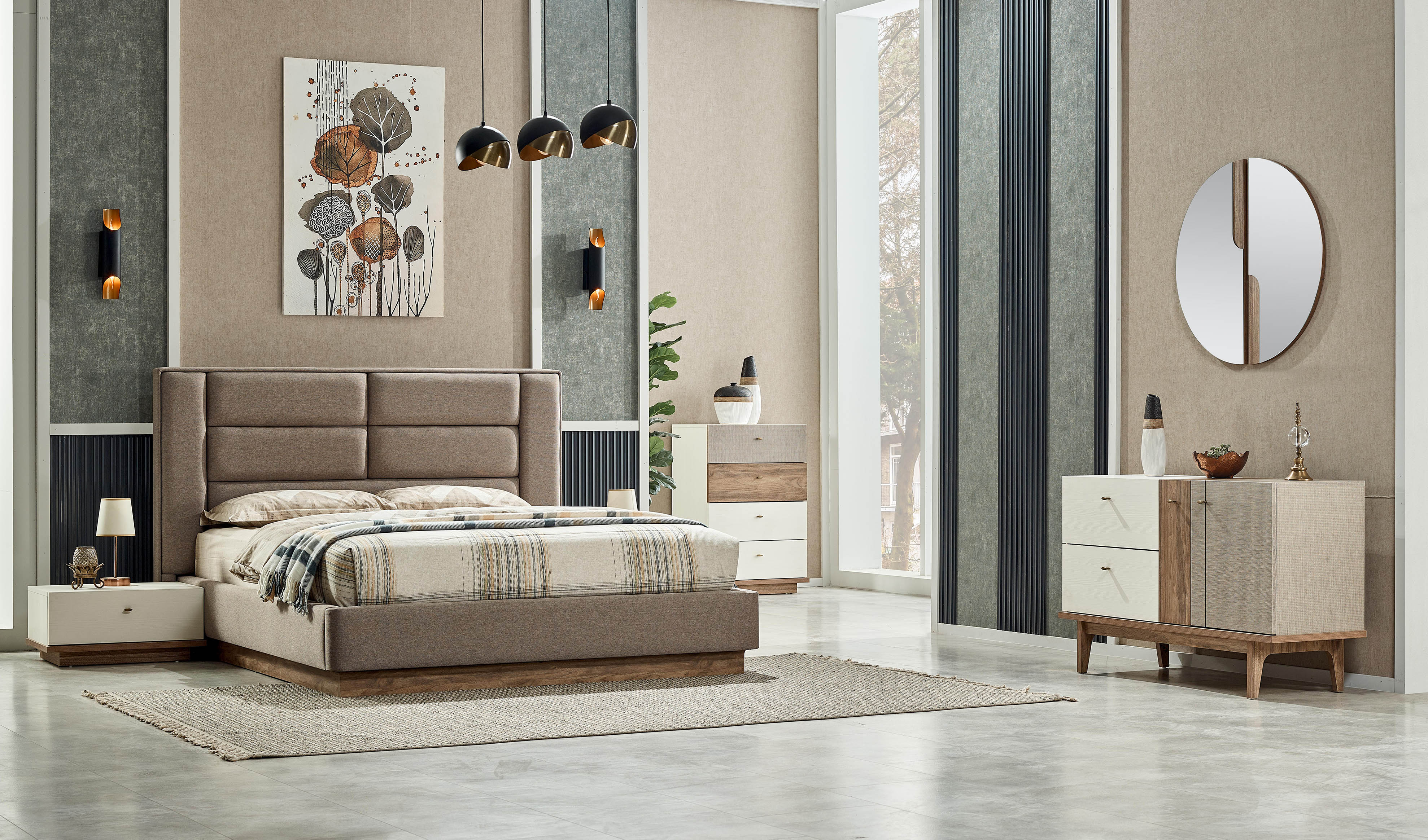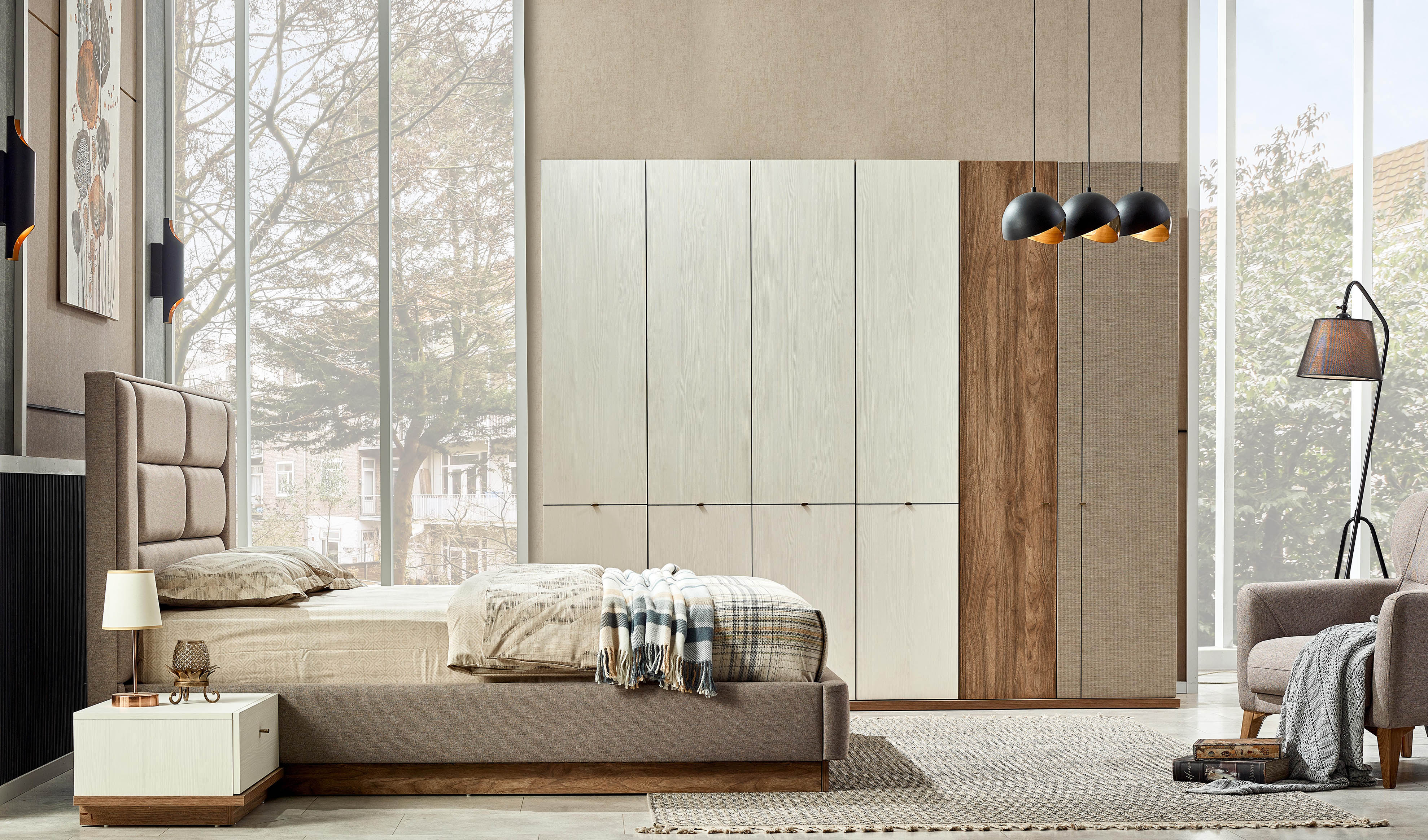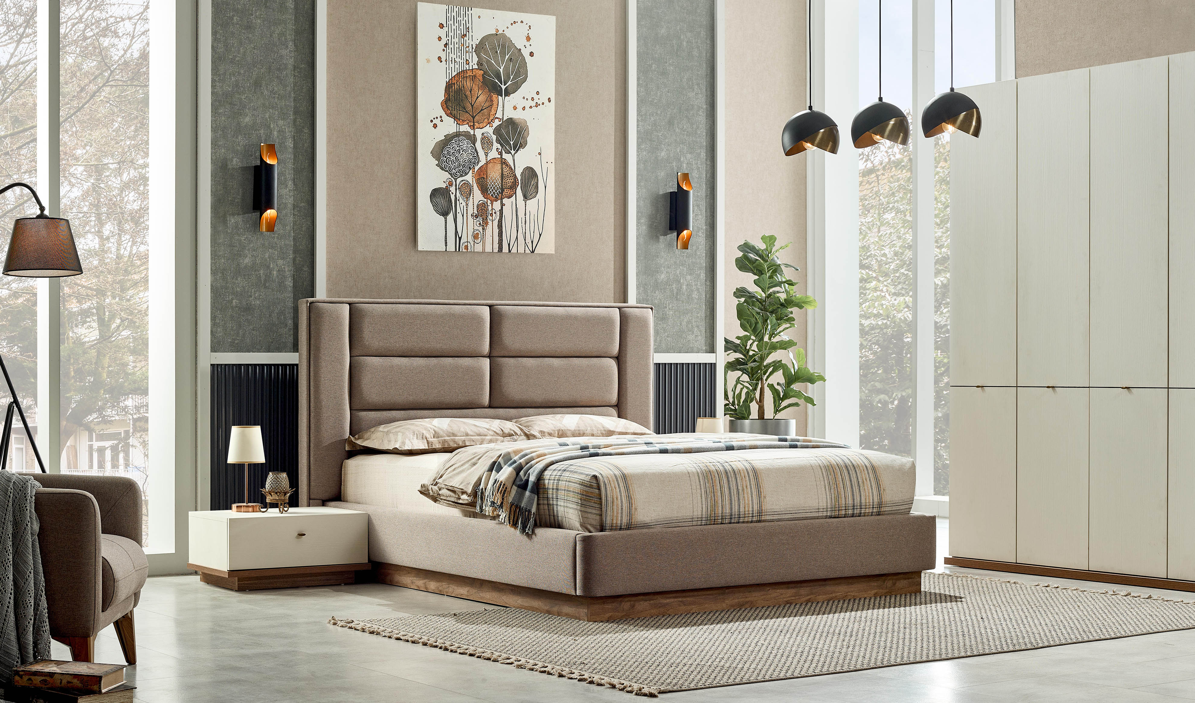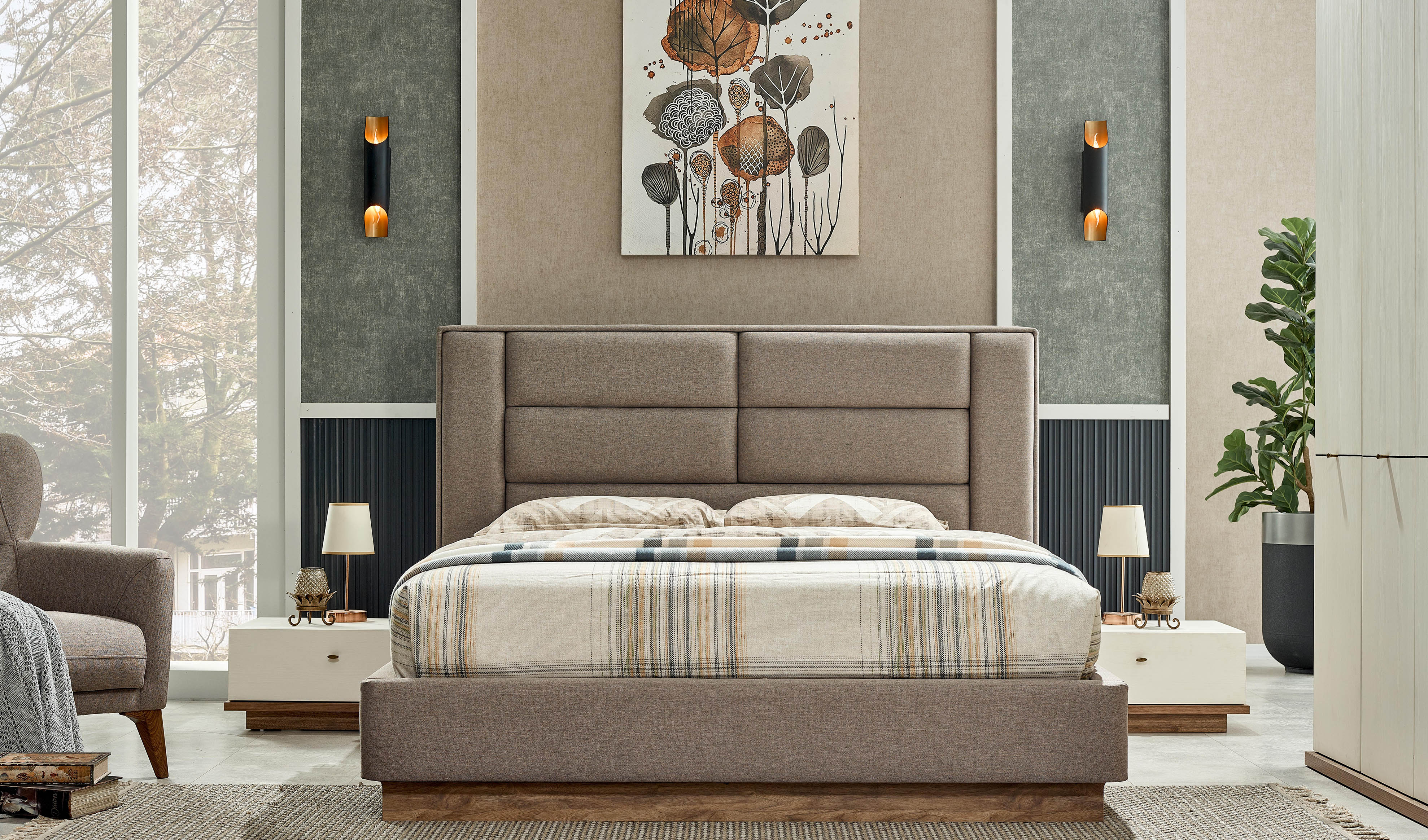 Lületaşı, nazarlık ve chevron birleşimiyle zamansız bir stil yaratan Lungo Yatak Odası, geniş gardıropları ve bazalı karyolasıyla fonksiyonel bir yaşam alanı yaratıyor. Silinebilir kumaş yapısı ve yüksek ayak tasarımıyla temizlik rutininize kolaylık sağlayan Lungo Yatak Odası, çevreye ve insan sağlığına duyarlı malzemelerle sizin için en iyisini düşünüyor.