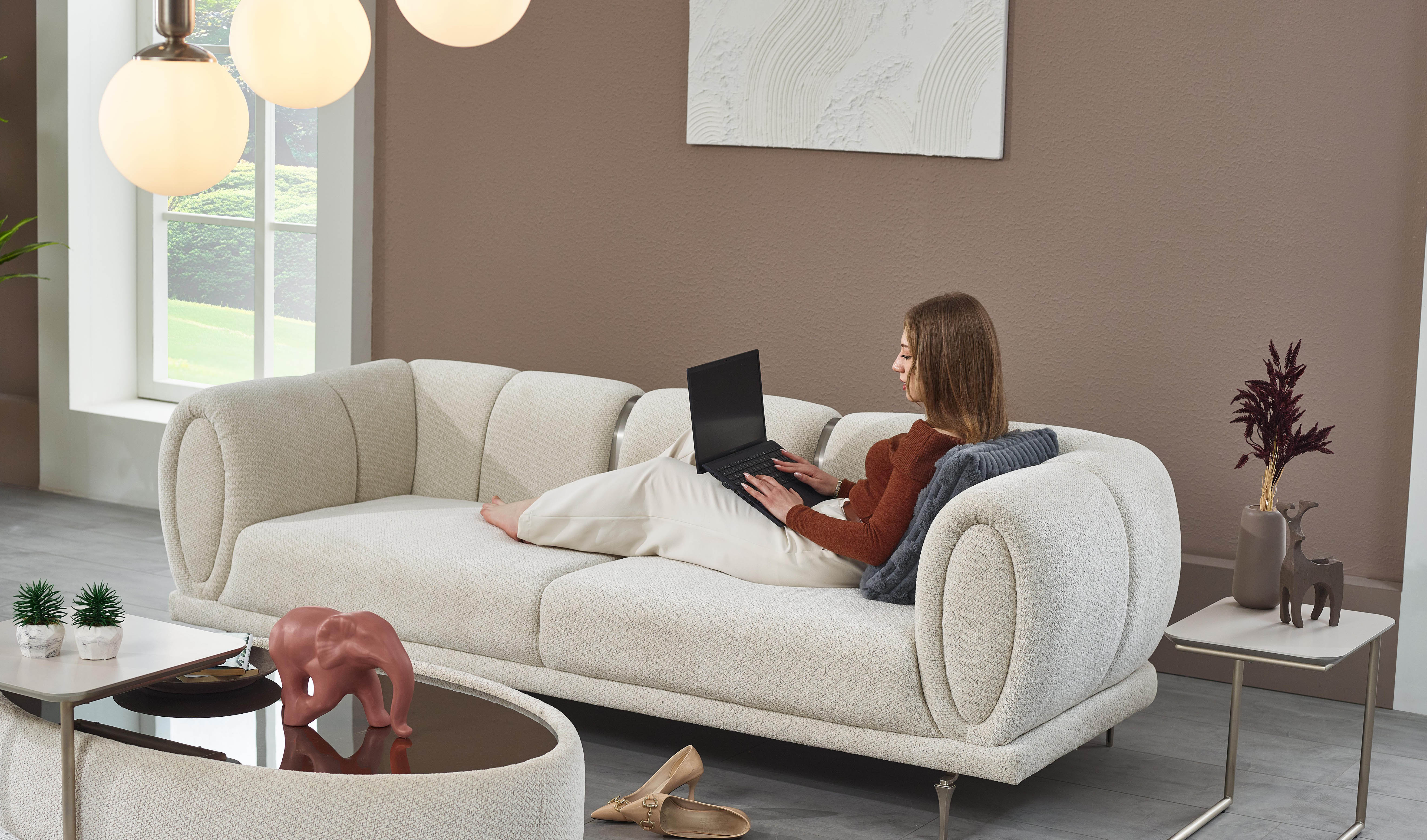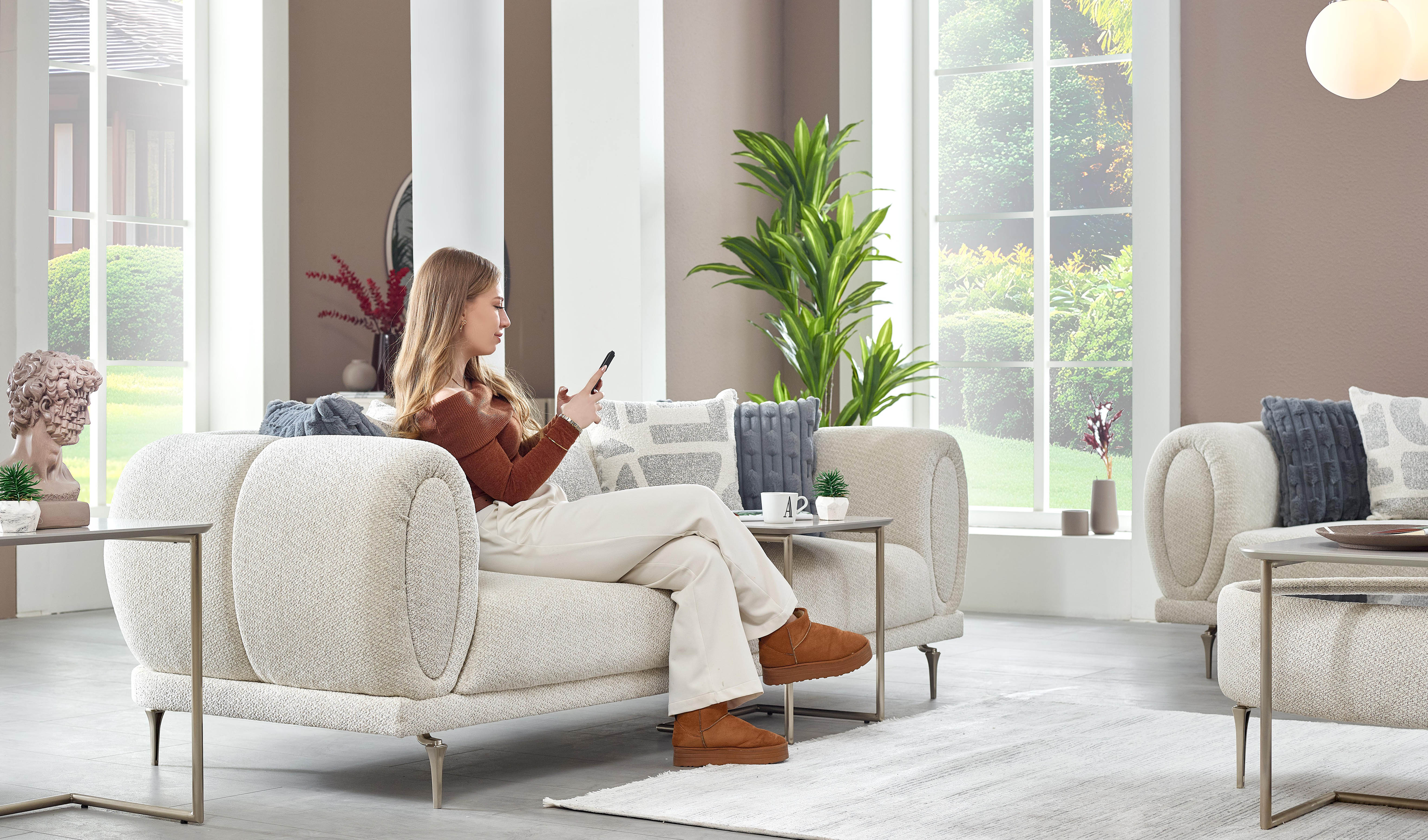 Novera Koltuk Takımı, modern tasarımı ve konforlu yapısıyla yaşam alanlarınıza sofistike bir dokunuş katacak. Kolay temizlenebilir şönilli dokuma kumaşı, katmanlı sünger yapısı ve S yay teknolojisiyle üstün oturum rahatlığı sunuyor. Metalik renkli şerit detayları ve yüksek metal ayak tasarımı zarif bir görünüm sağlarken, 360 derece dönebilen berjeri hareket özgürlüğü sunuyor. Dekoratif peluş ve desenli kırlent seçenekleriyle Novera, estetiği ve işlevselliği bir araya getiriyor.
