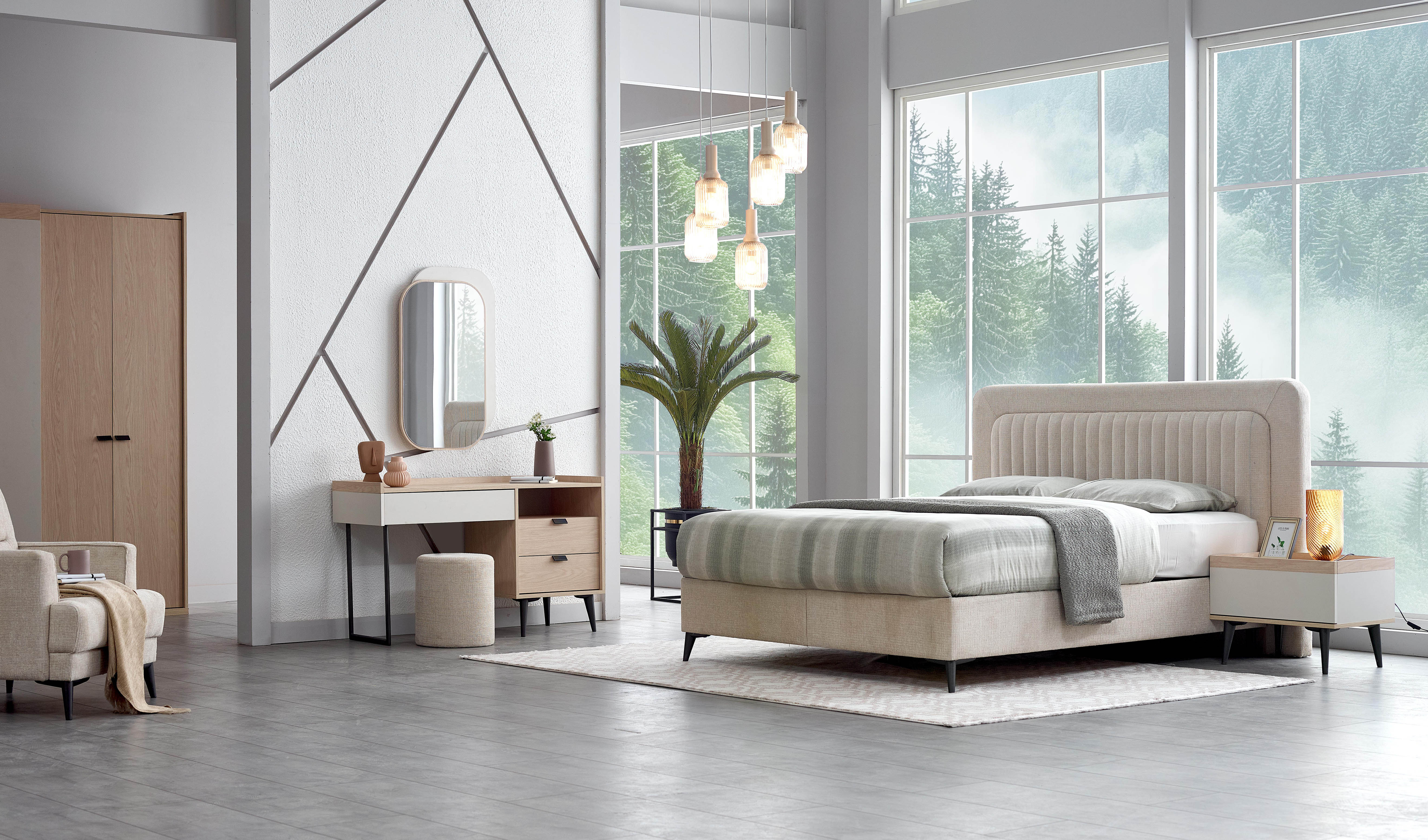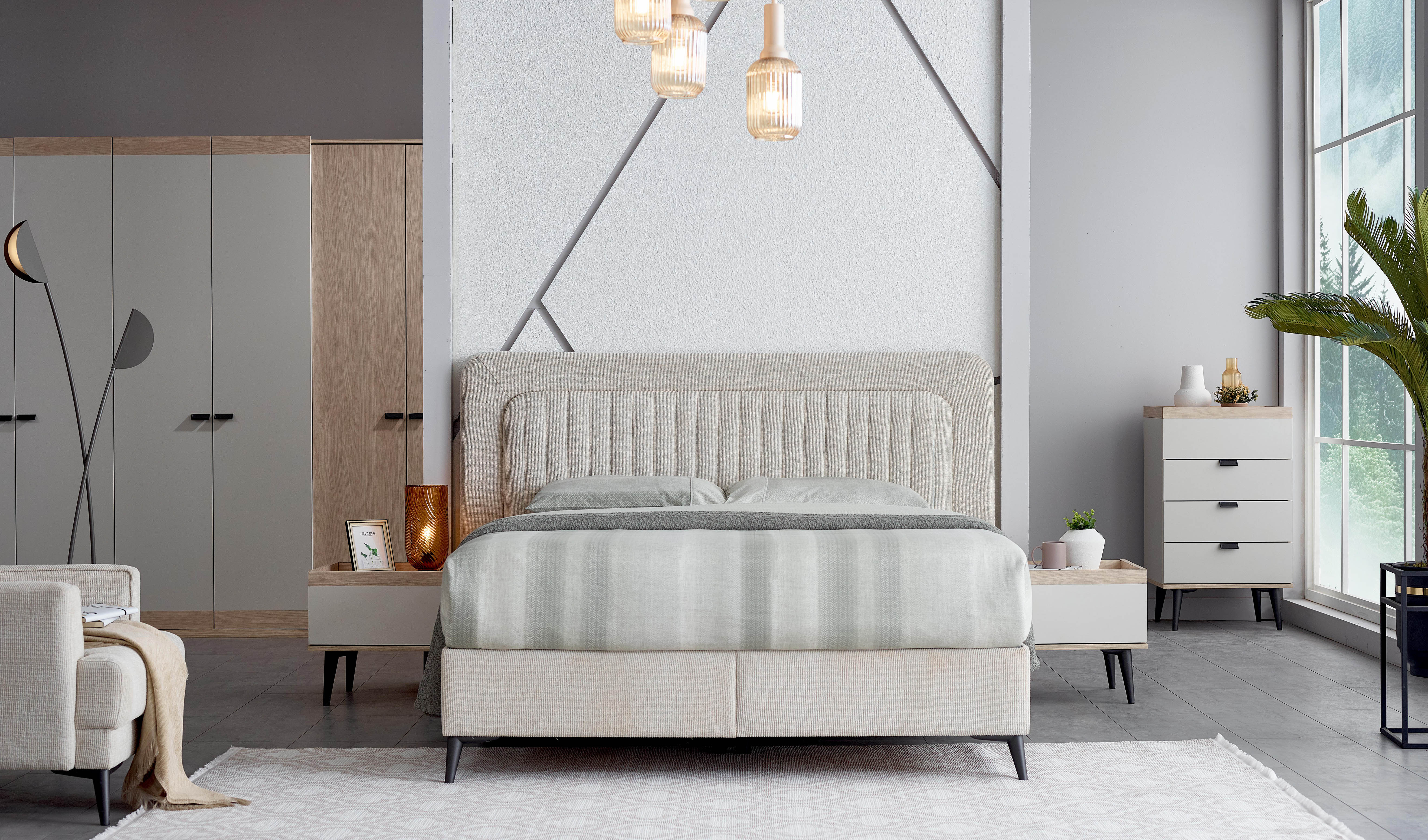 Yatak odanızda modern bir zarafet arıyorsanız, Noya Yatak Odası ile hayalleriniz gerçeğe dönüşüyor! Modern ve şık tasarımı, pusula ve bony renk kombinasyonu ile odanıza sofistike bir hava katarken, her anında huzur bulmanızı sağlıyor. Seriye özel formda kulp tasarımı ve seriye özel formda ayak tasarımı, her detayıyla fark yaratıyor; düz renk ayna uygulaması ise odanıza ferahlık ve derinlik katıyor.
