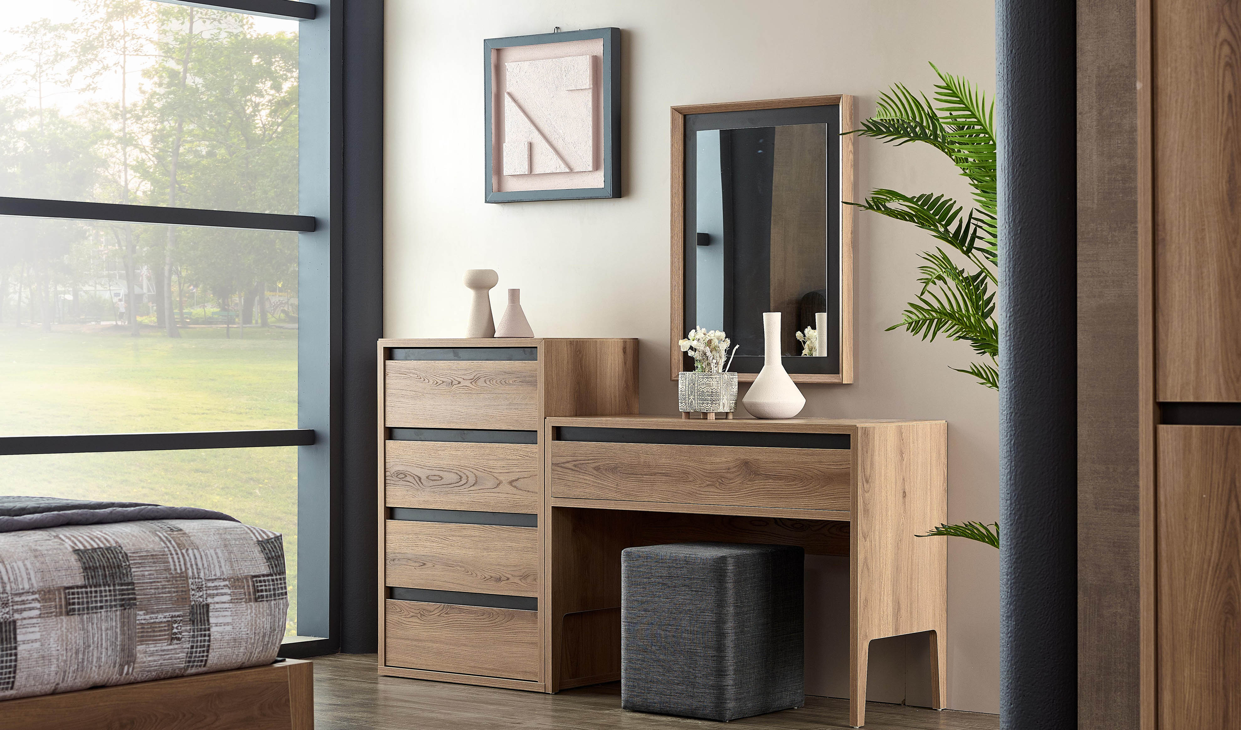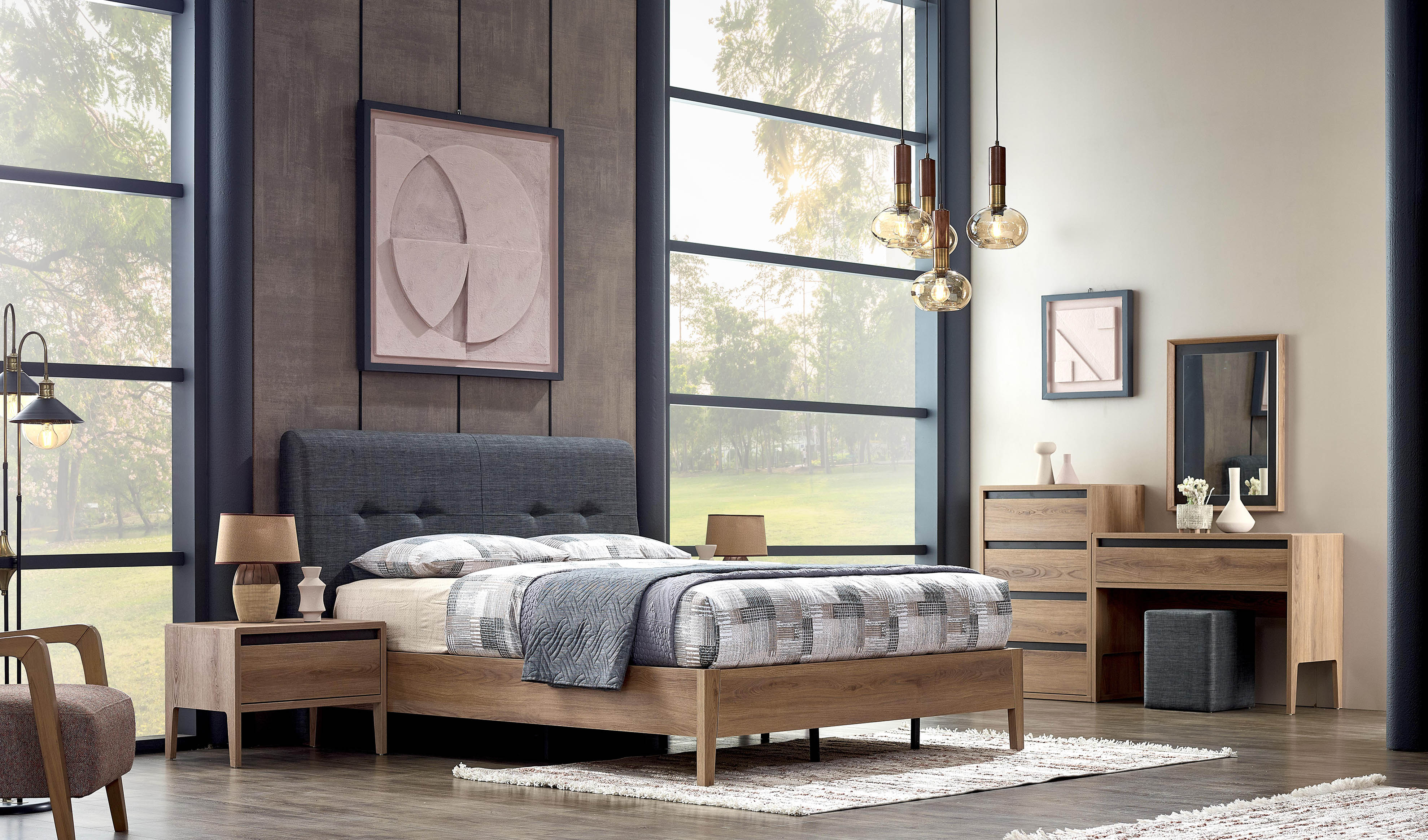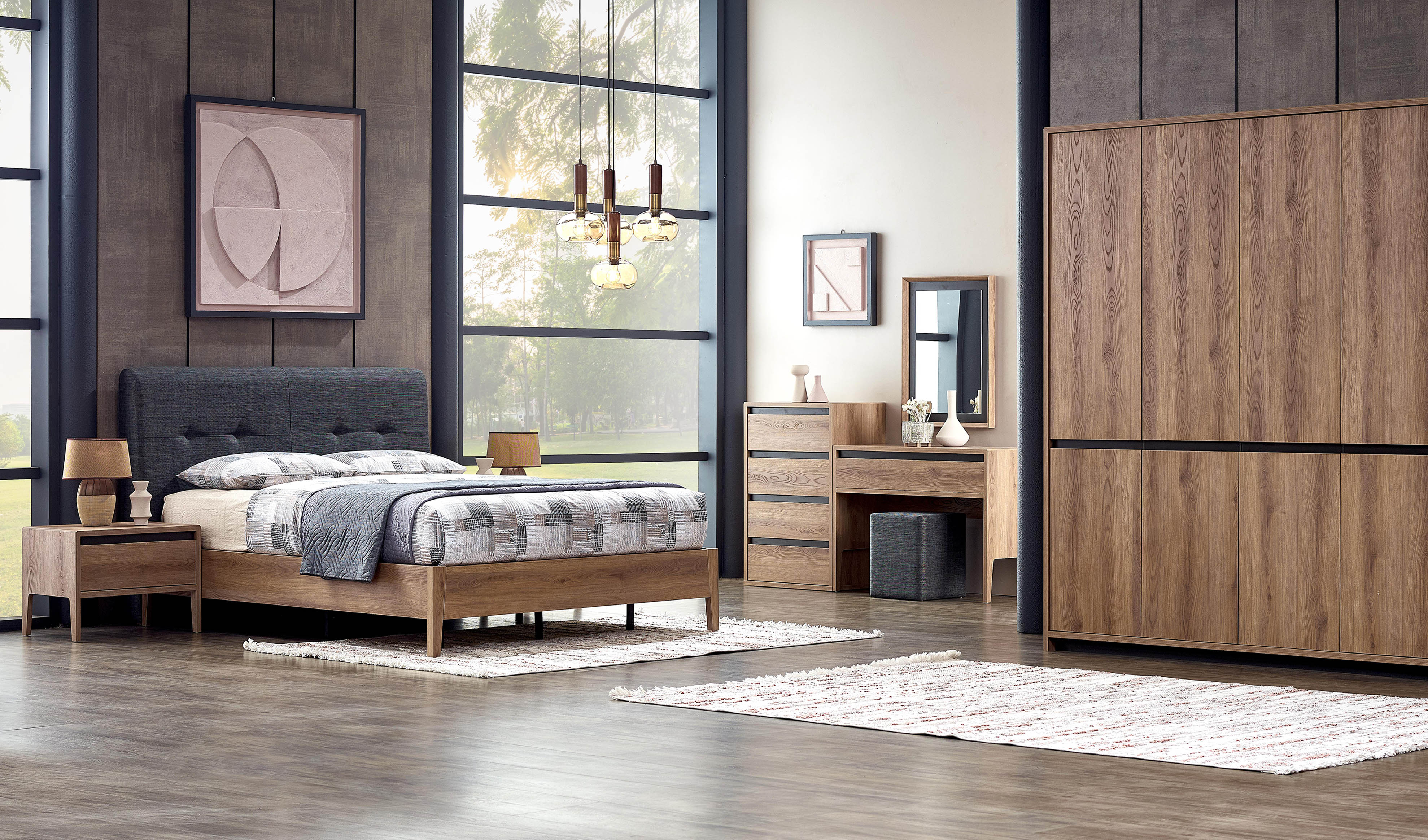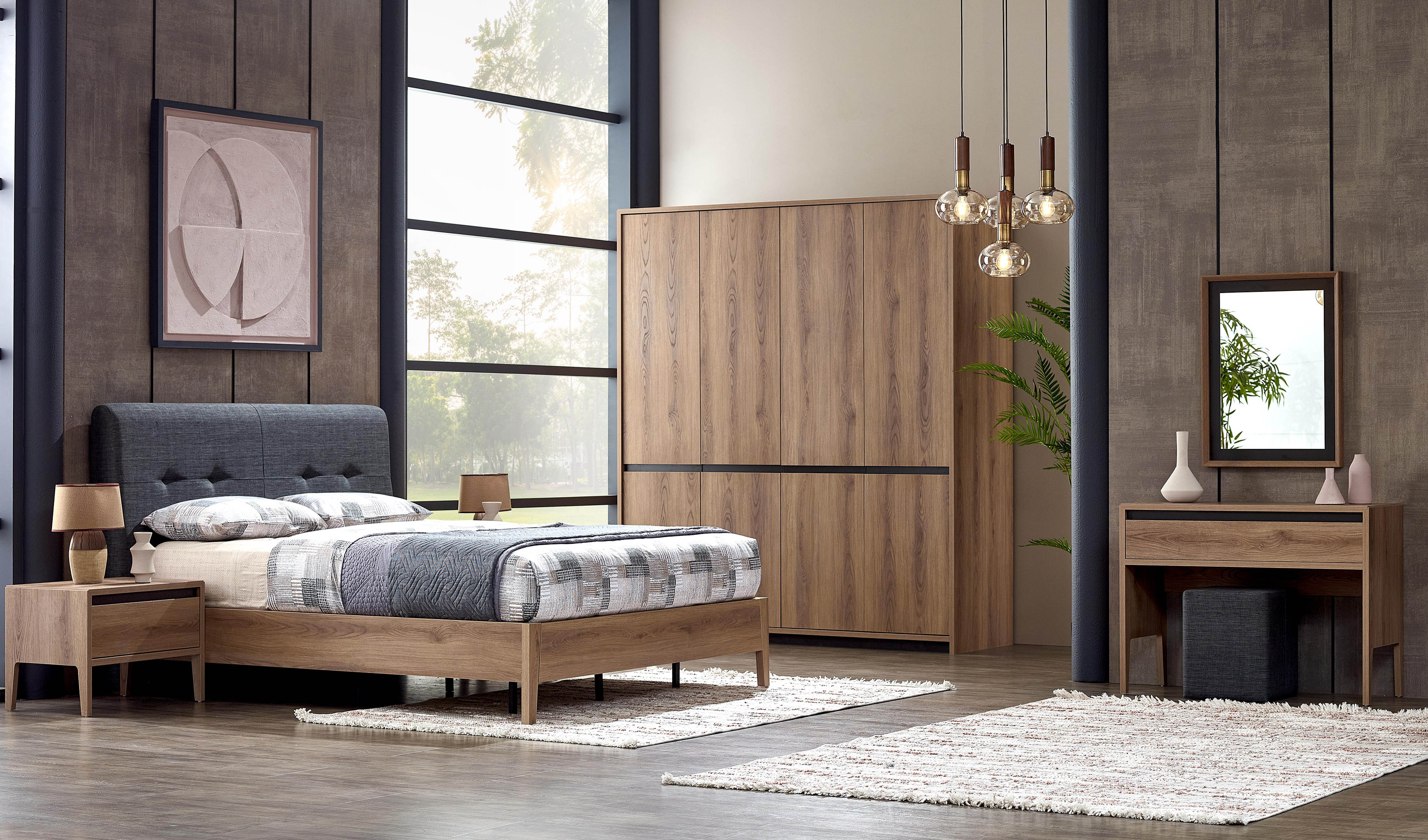 Perla Yatak Odası, yalın tasarımıyla size zamansız bir yaşam alanı vadediyor. Afrika ceviz ve detaylardaki İpek siyah renkler odanıza eşsiz bir zarafet katarken, geniş gardırop seçenekleriyle depolama alanı ihtiyacınıza pratik çözümler sunacak.