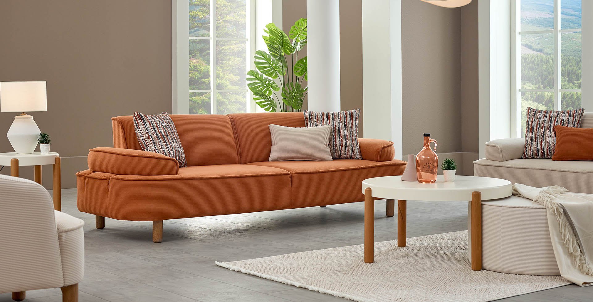 Romaks Koltuk Takımı, sehpalı ve normal seçenekleriyle her yaşam alanına uyum sağlayacak esnek bir tasarım sunuyor. Yüksek ayak yapısı sayesinde mekânınıza ferahlık katan ürün, sırtta ve kolda açılır makas mekanizması ile eşsiz konfor ve pratiklik vadediyor. Sehpalı üçlü modelde entegre USB giriş fonksiyonu, teknolojiyi yaşam alanınıza taşıyor; çizgili kadifemsi örme kumaş ise dokunuşuyla sofistike bir his veriyor. Üstüne, sakallı iplikle yapılmış dekoratif kırlentler detaylara verdiği önemin simgesi olurken, zengin renk seçenekleri kişisel tarzınızı ön plana çıkarıyor. Ayrıca, sırt, kol ve fontta fitil detaylar incelikle işlenmiş olup, lastik kolon üzeri katmanlı sünger yapısı uzun süreli kullanımda üstün rahatlık sağlıyor.