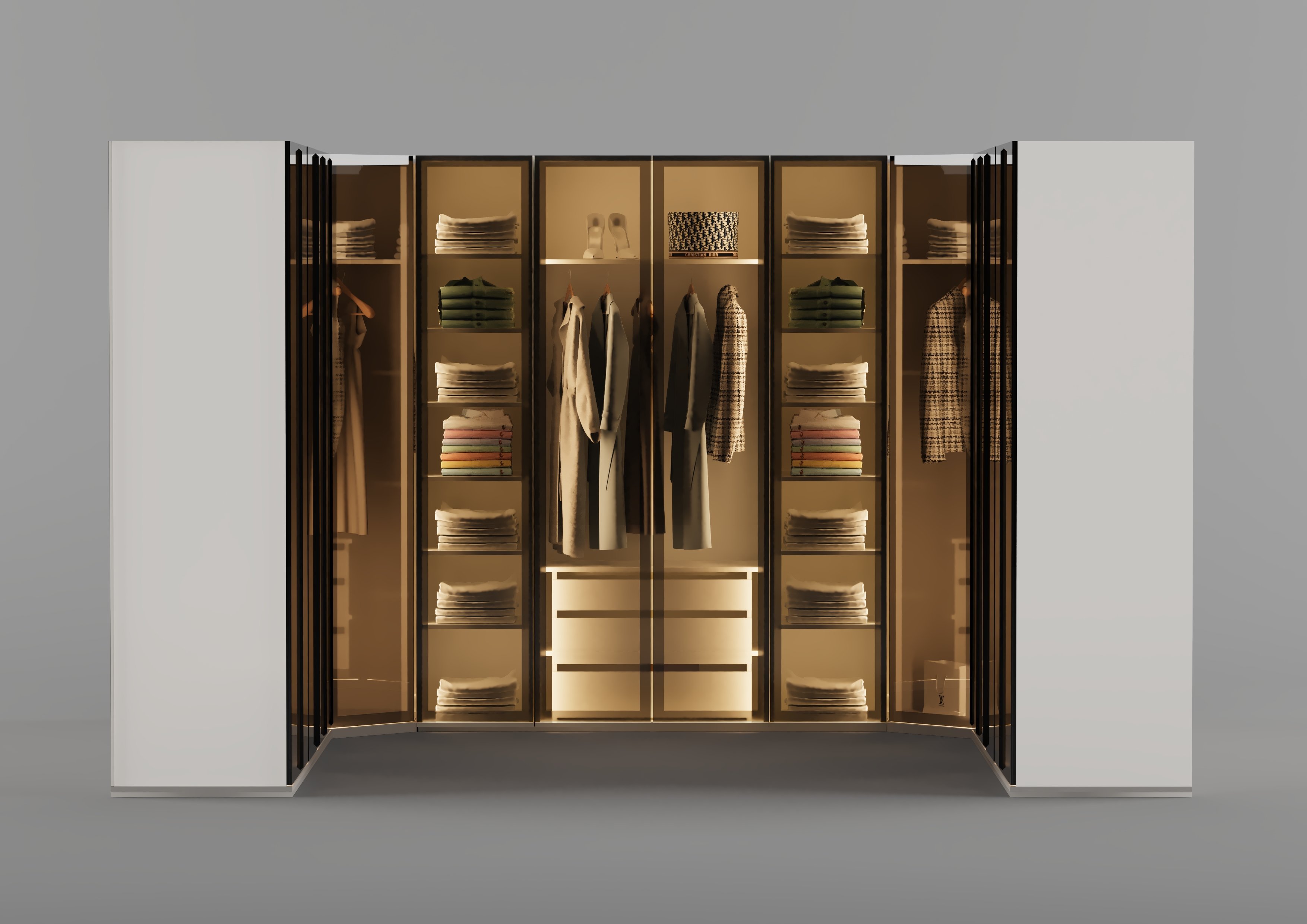 Alina Giyinme Odası 2 Kapılı Dolap Füme Reflekte Camlı