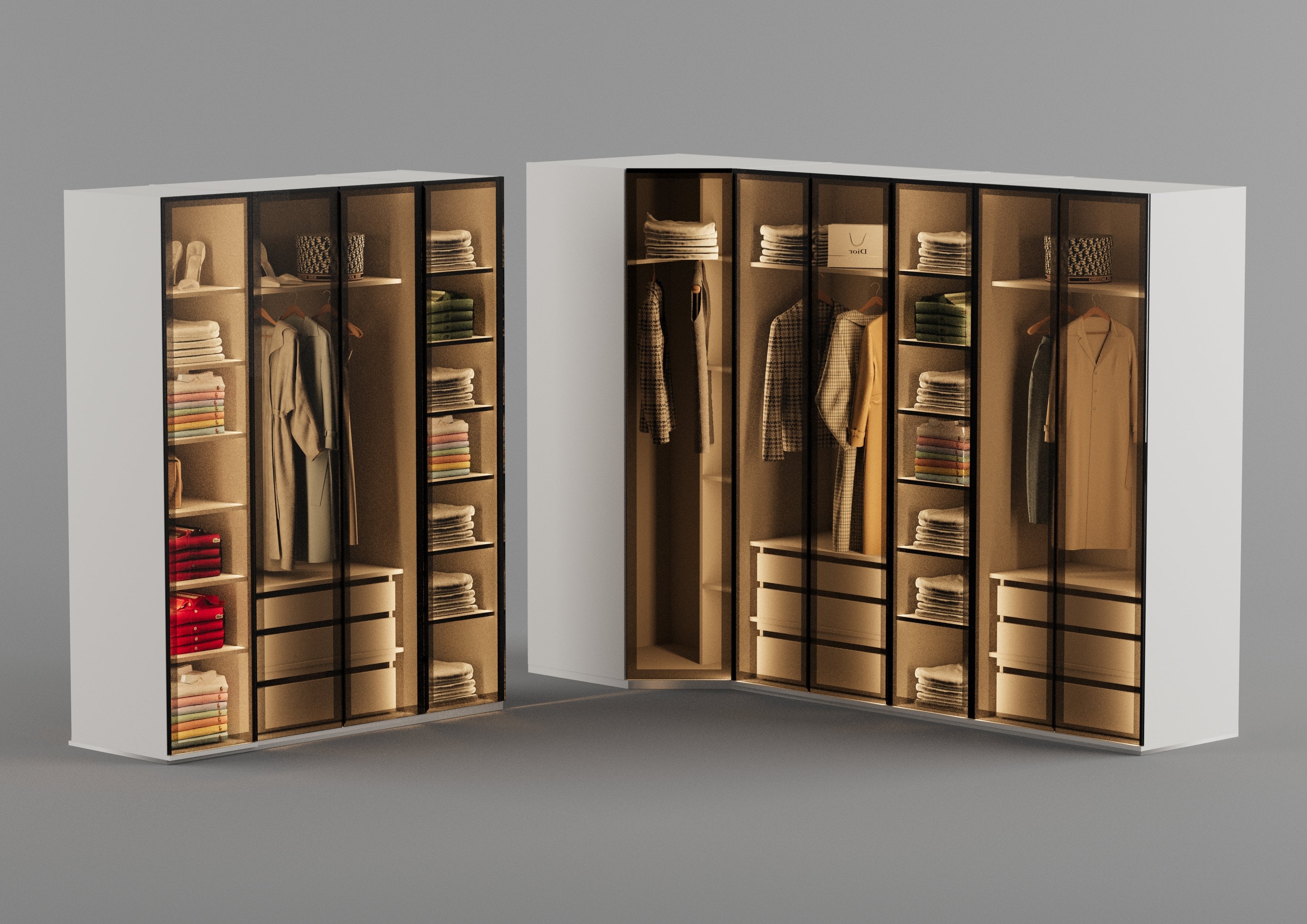 Alina Giyinme Odası Reflekte Camlı Köşe Dolabı