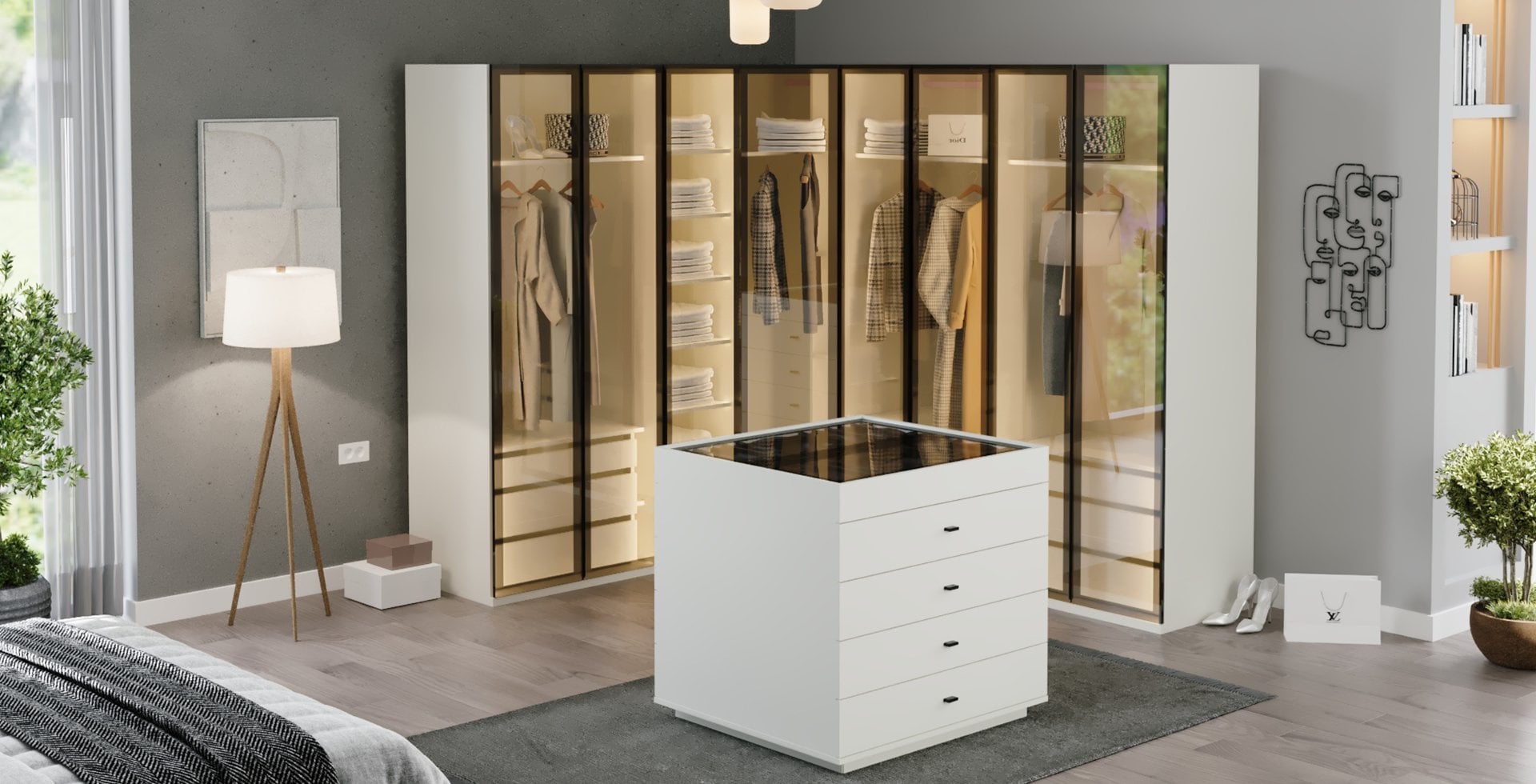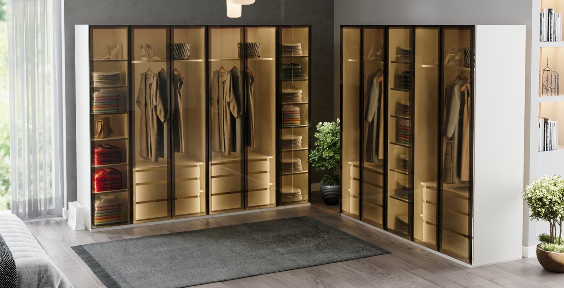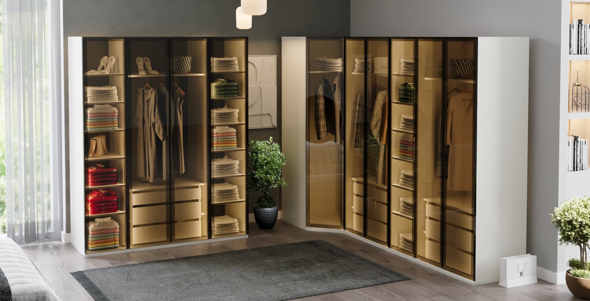 Alina Giyinme Odası Reflekte Camlı Köşe Dolabı