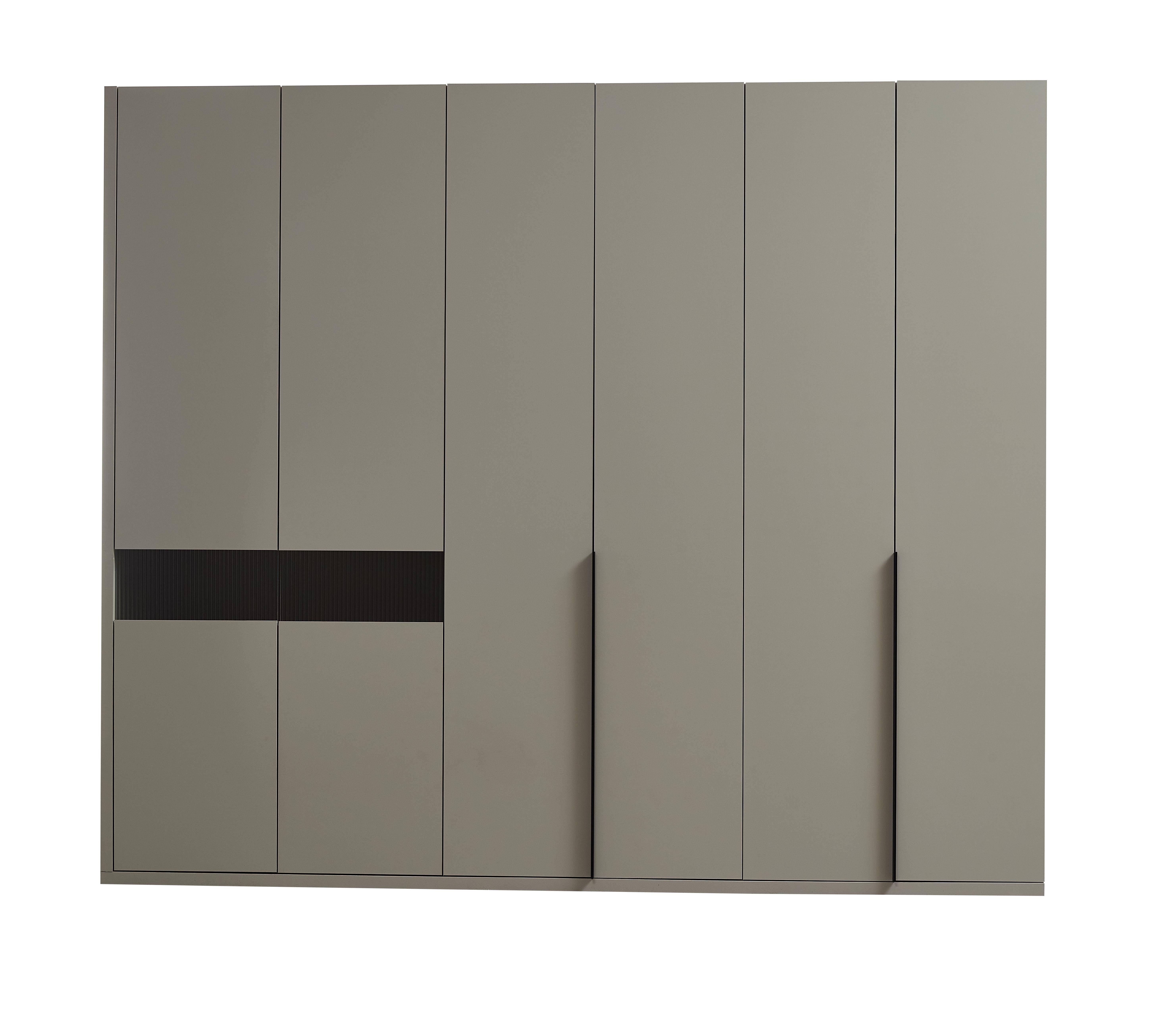 Şıklık ve fonksiyonelliği buluşturan bu özel koleksiyon, Mozambik ve siyah renk uyumu, nervürlü cam kapaklar ve metal detaylarla estetik bir görünüm sunuyor. Farklı kapak seçenekleri ve çekmece opsiyonları, gardırop kullanımını kişiselleştirme imkânı sağlıyor.