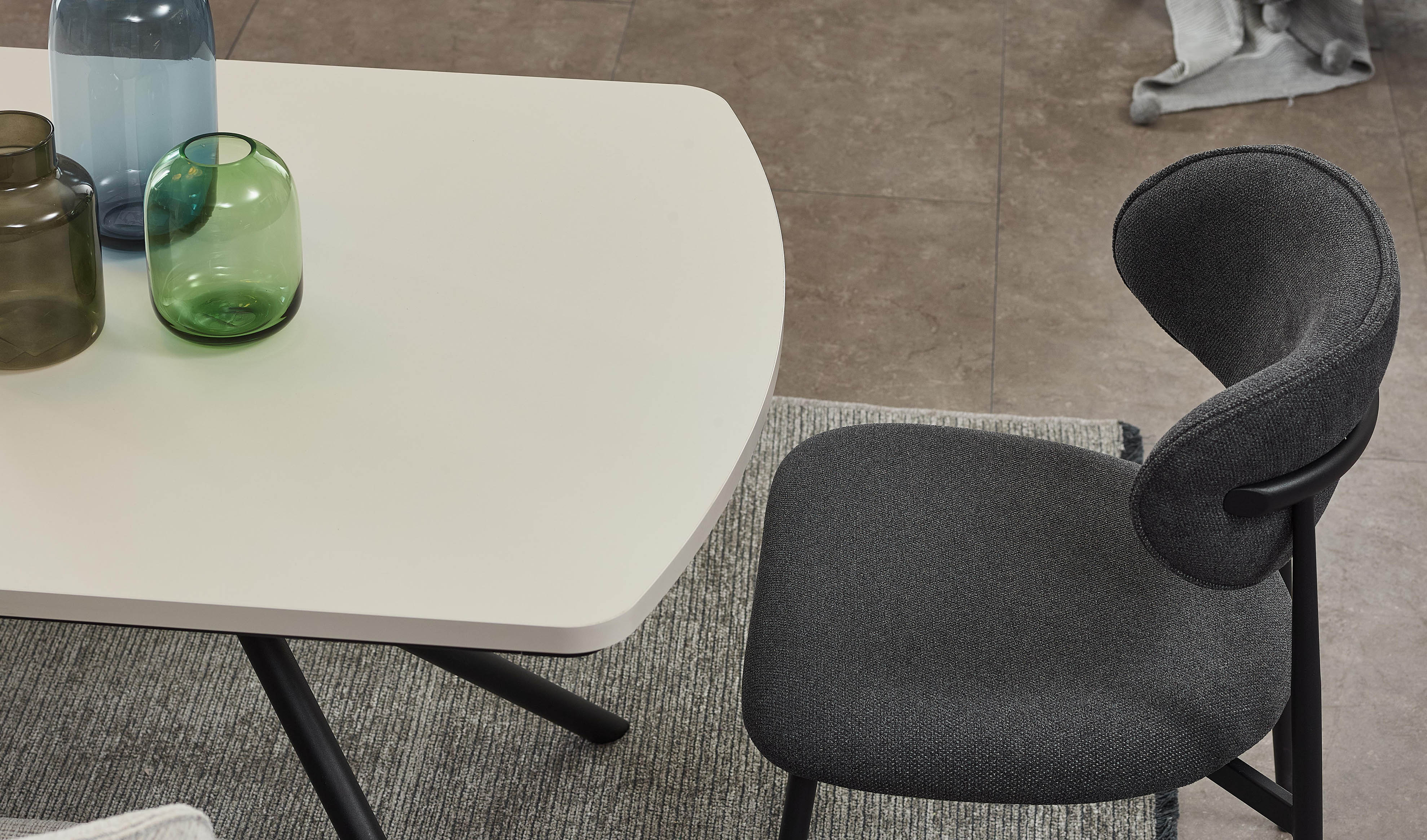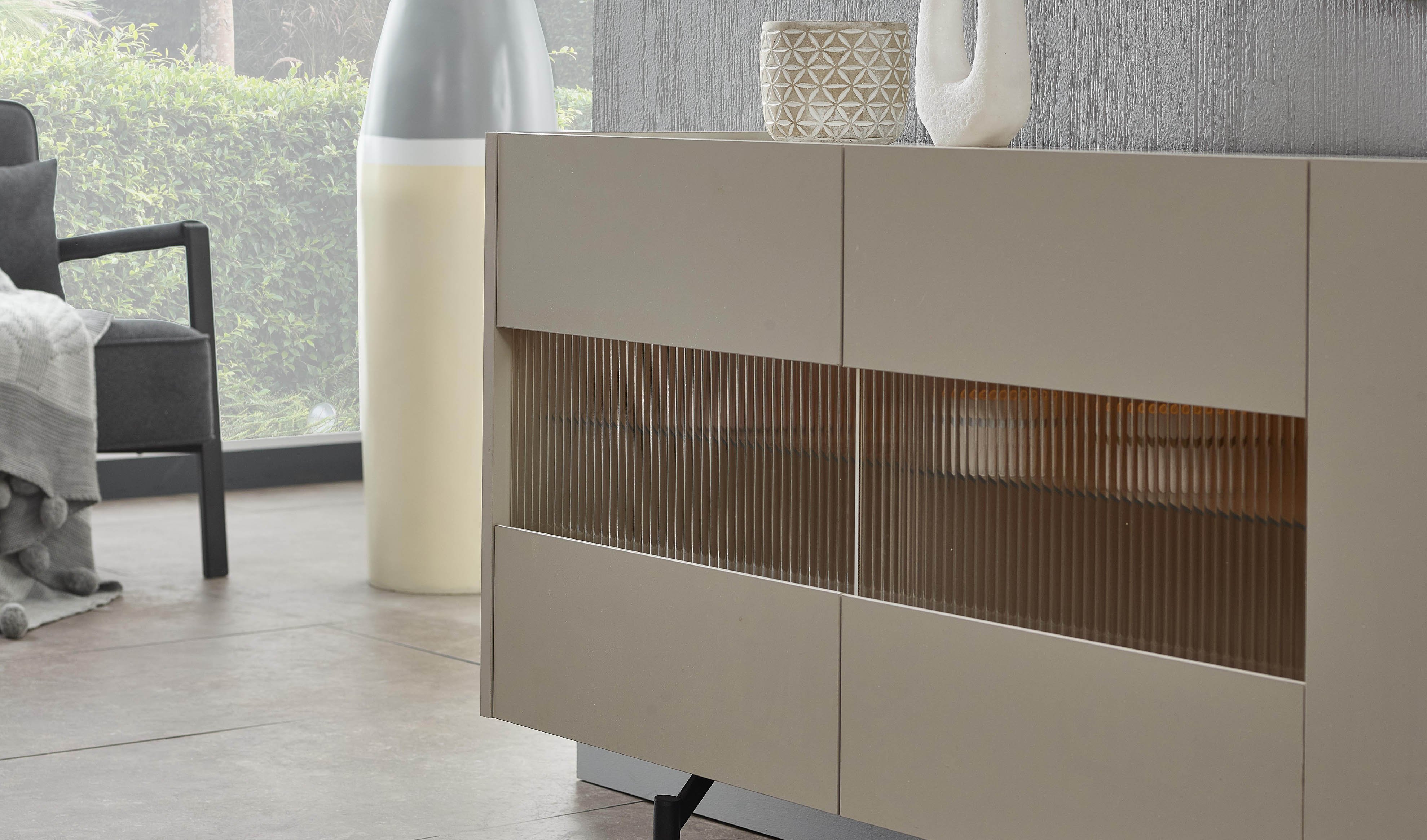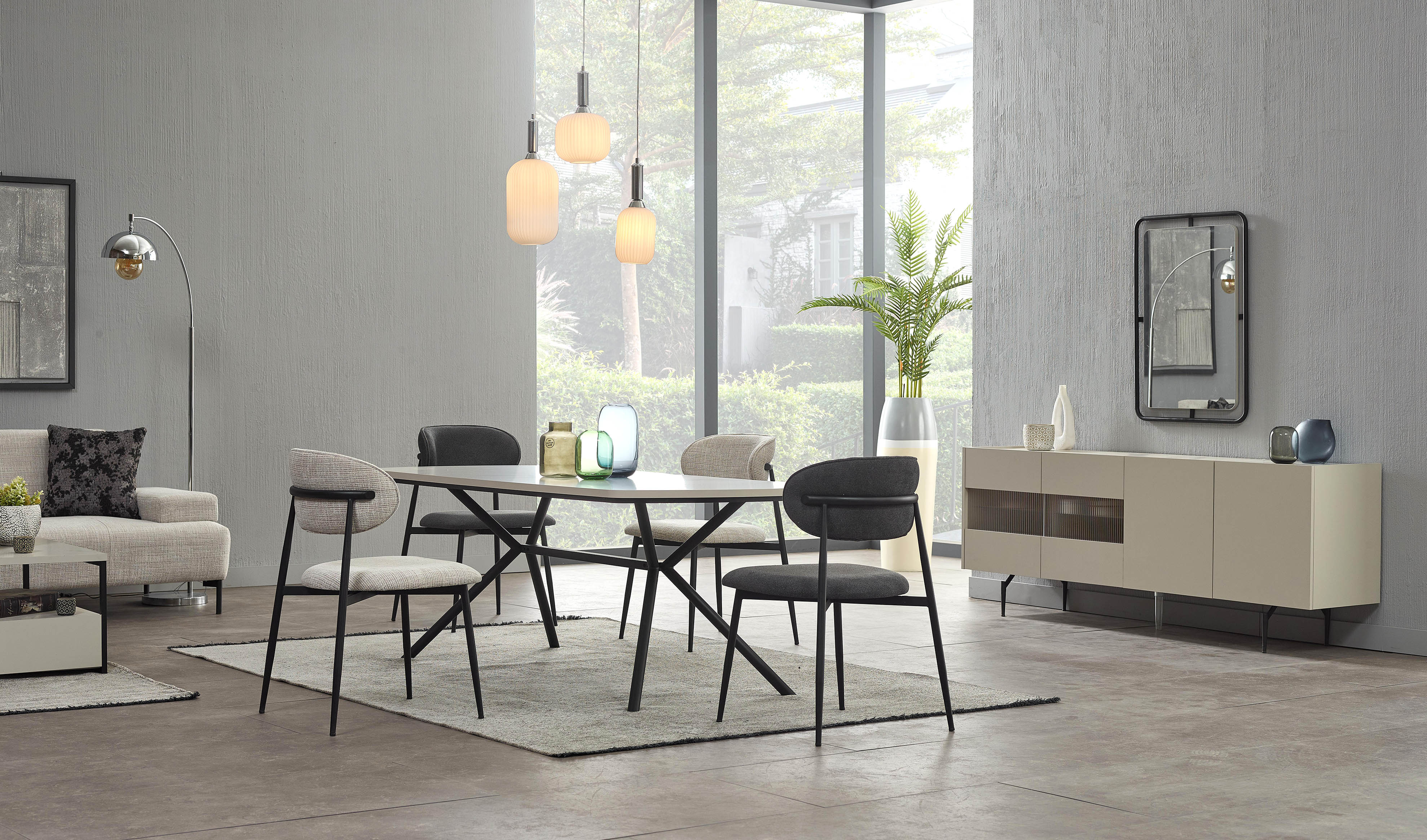 Mozambik ve siyah renk uyumu, nervürlü cam kapaklar ve metal detaylarla şıklığı tamamlıyor. Yavaşlatıcılı mekanizma, uzun ömürlü kullanım sunarken, yüksek ayak yapısı temizliği kolaylaştırıyor. Sabit ve açılır yemek masası seçenekleri ile her ihtiyaca uyum sağlıyor. E-1 kalite standartları ile sağlıklı ve çevre dostu malzemelerle üretilen bu koleksiyon, modern yaşam alanlarına zarif bir dokunuş katıyor.