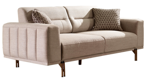 Bu özel tasarım, modern çizgileri ve kaliteli malzemeleriyle dikkat çekerken, sunduğu rahatlıkla da fark yaratıyor. Dokuma kumaş uygulaması ile kaplanmış yüzeyi, hem dayanıklı hem de yumuşacık bir his sunuyor. Ahşap görünümlü, füme renk kaplamalı metal ayak tasarımı sayesinde sağlamlık ve estetiklik bir arada gelirken, kolda ve iç arkada çizgili kapitone uygulaması zarif bir şıklık katıyor. Üstelik sırtta takla açılır mekanizma sayesinde koltuğunuz anında yatağa dönüşüyor; pratik ve kullanışlı! S yay ve katmanlı yüksek yoğunluklu sünger ile rahat oturum sunan bu takım, uzun süreli konfor sağlarken, berjer iç arkada semerli tasarım ve dekoratif üç boyutlu kırlent uygulaması ile görsel bir şölen sunuyor.