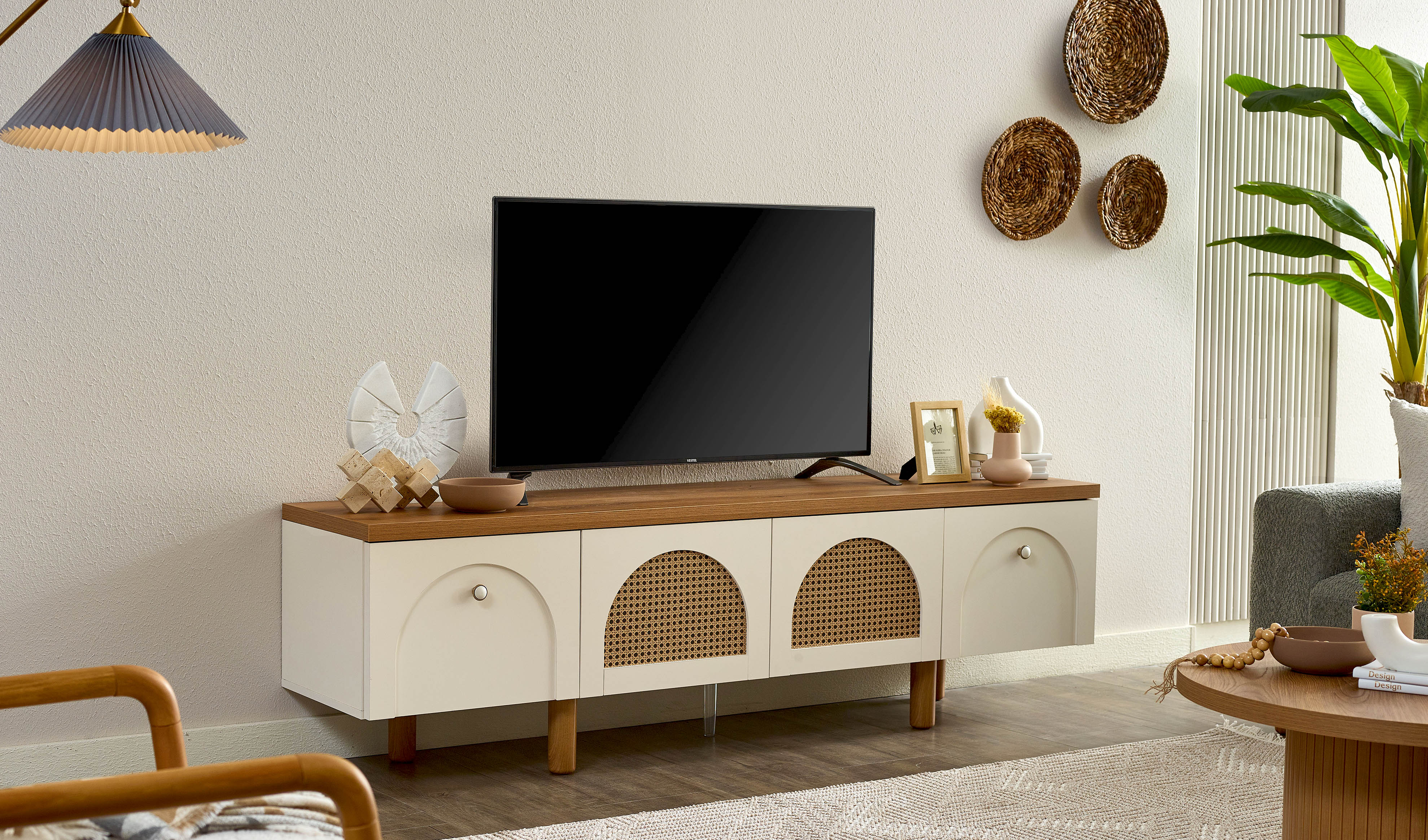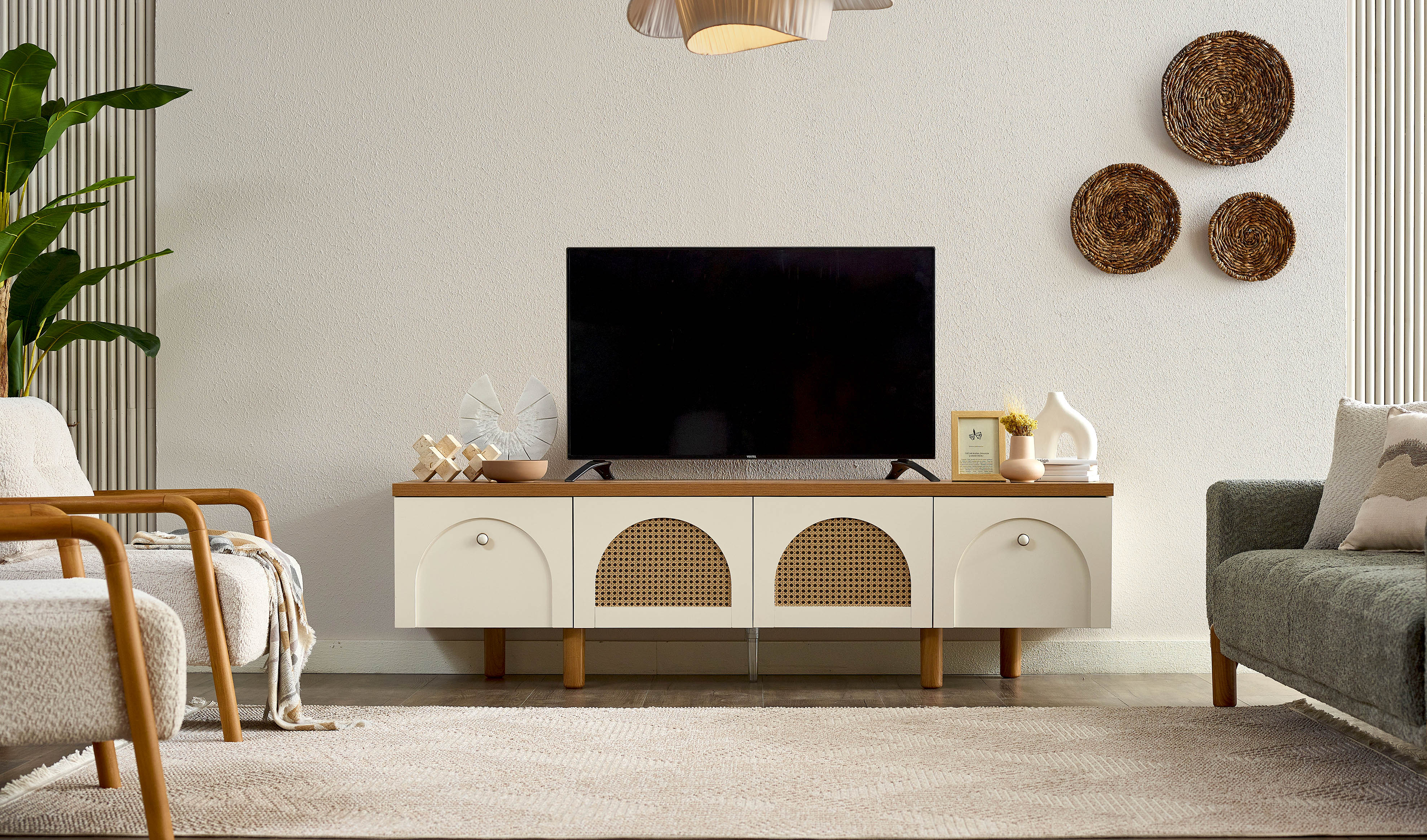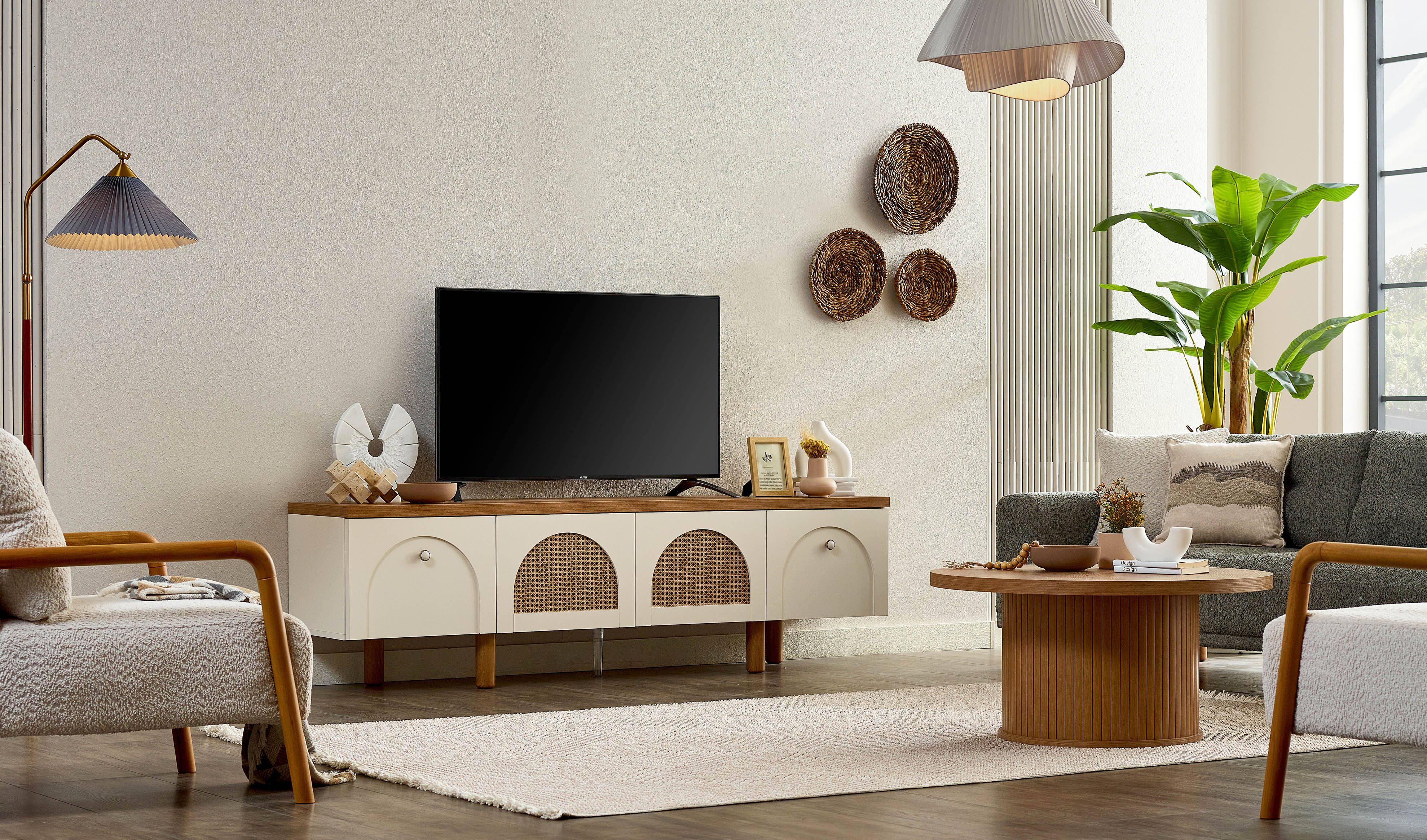 • Tv ünitesi orta kapaklarında hasır detay tasarımı