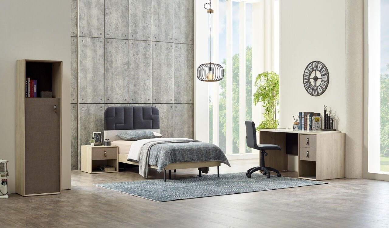 Costa, sana hem stil hem de kolaylık sunuyor. Gardropta çekmece uygulaması, eşyalarını düzenlemeyi pratik hale getirirken, modüllerde soft açı detayları keskin hatlardan uzak yumuşak bir estetik sağlıyor. Kapaklarda ve çekmecelerde frenlemeli mekanizma özelliği, sessiz ve konforlu bir kullanım sunuyor; çalışma masasında USB’li şarj soketi detayı ise telefonunu ya da tabletini her an hazır tutuyor. Karyola başlığında silinebilir kumaş uygulaması, temizliği kolaylaştırarak genç hayatının temposuna ayak uyduruyor.