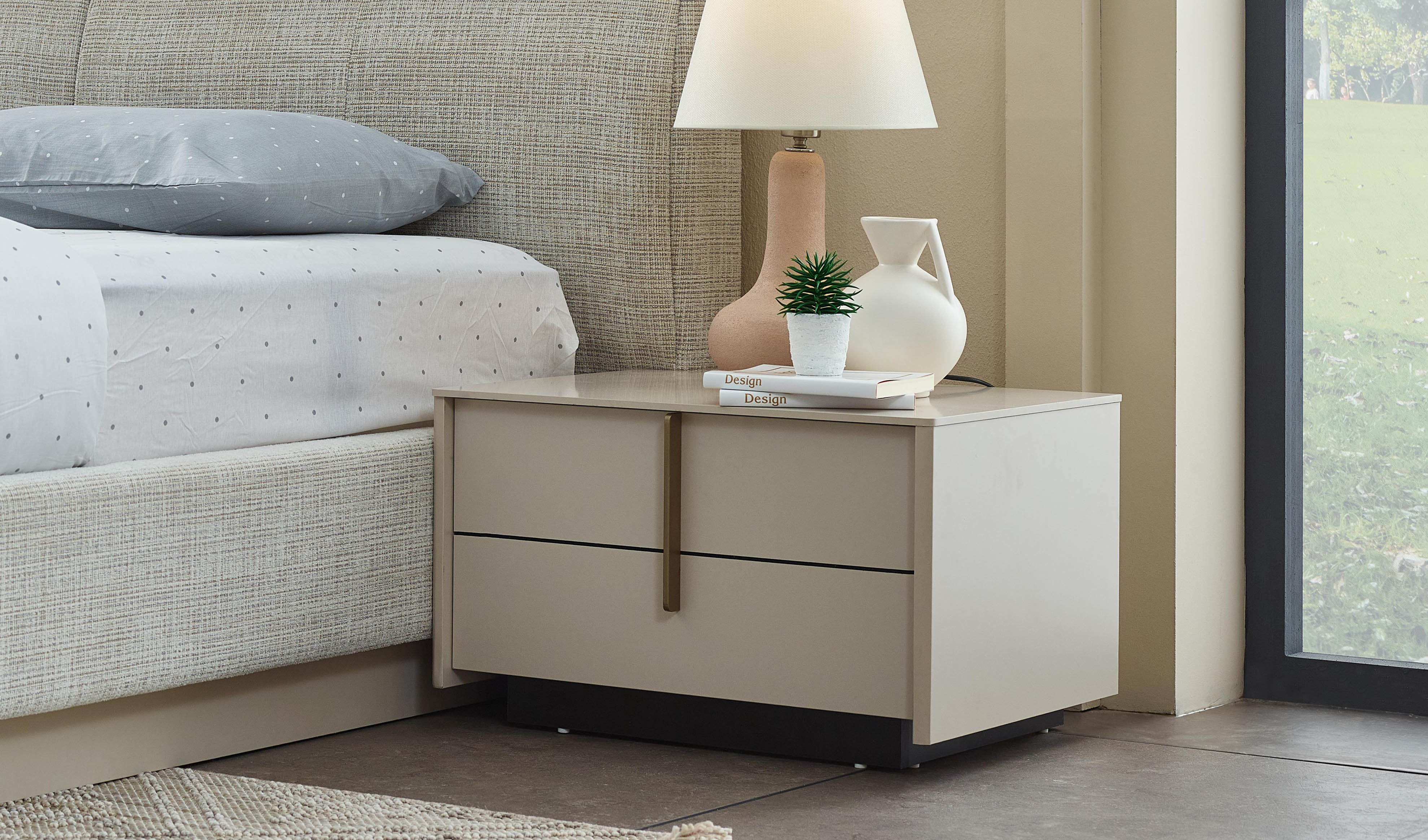 Bazalı karyola ve silinebilir örme kumaş başucu, konfor ve pratikliği bir araya getirirken, E-1 kalite standartlarına uygun malzemeler sağlıklı bir yaşam alanı sunuyor.