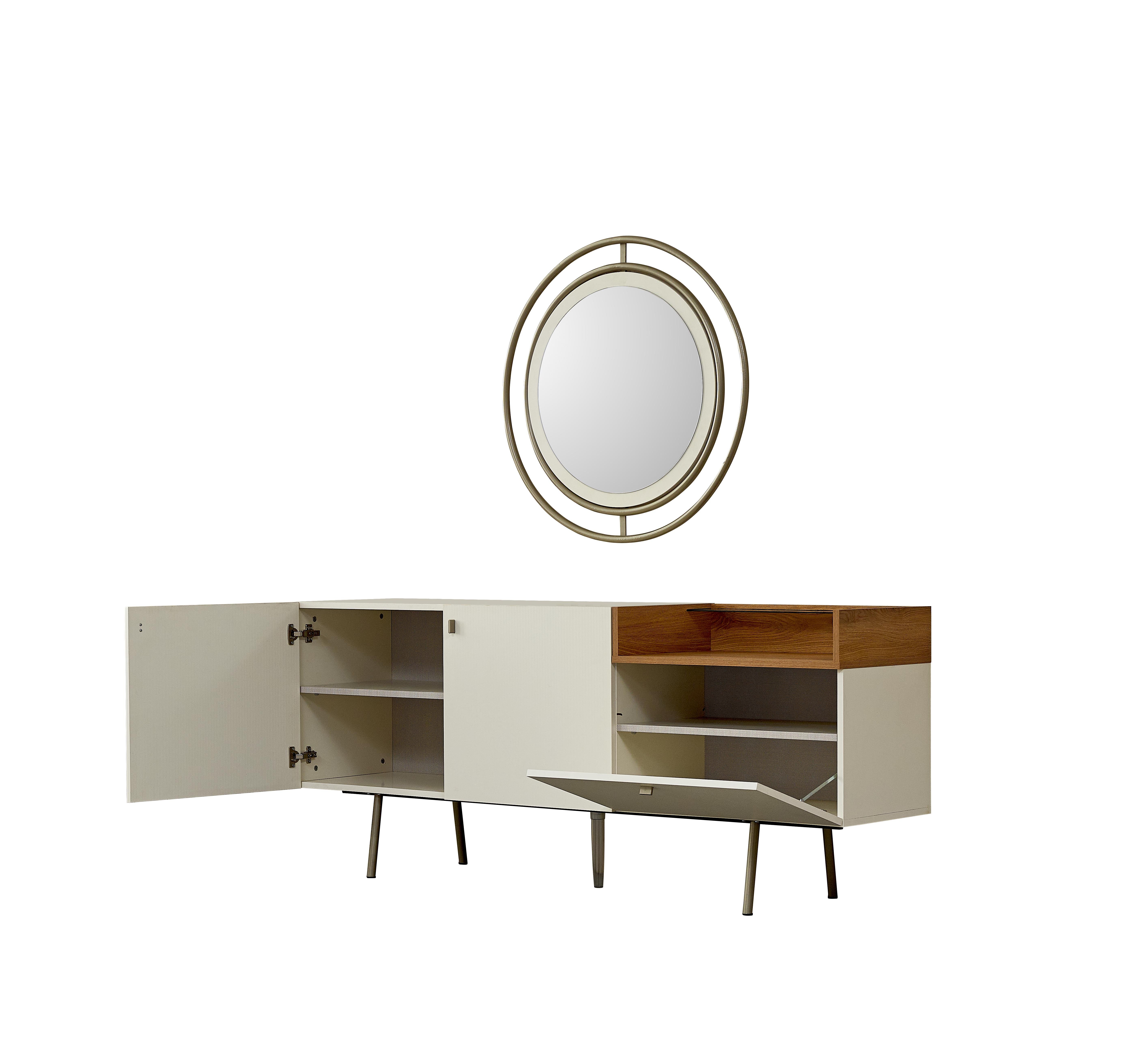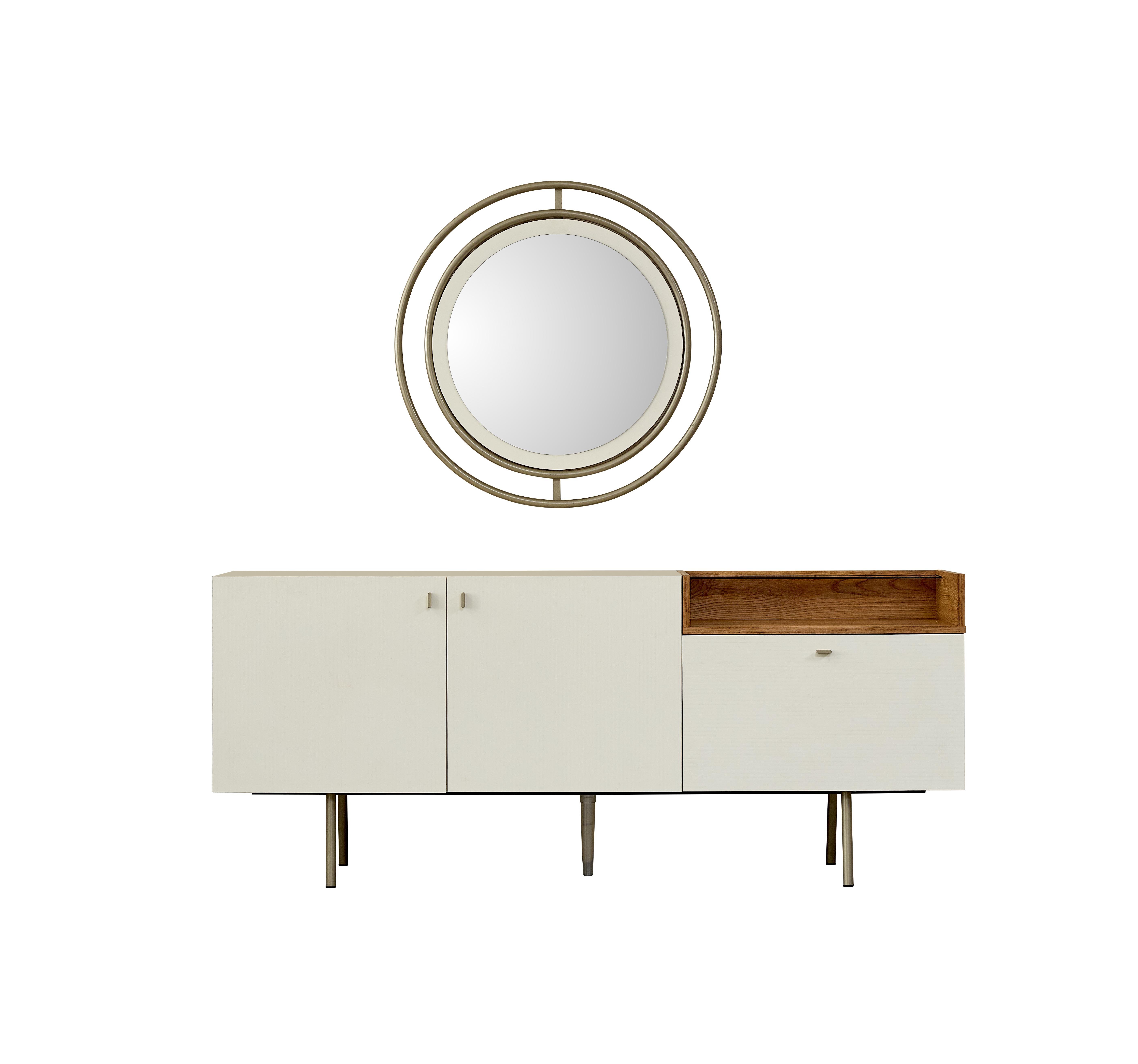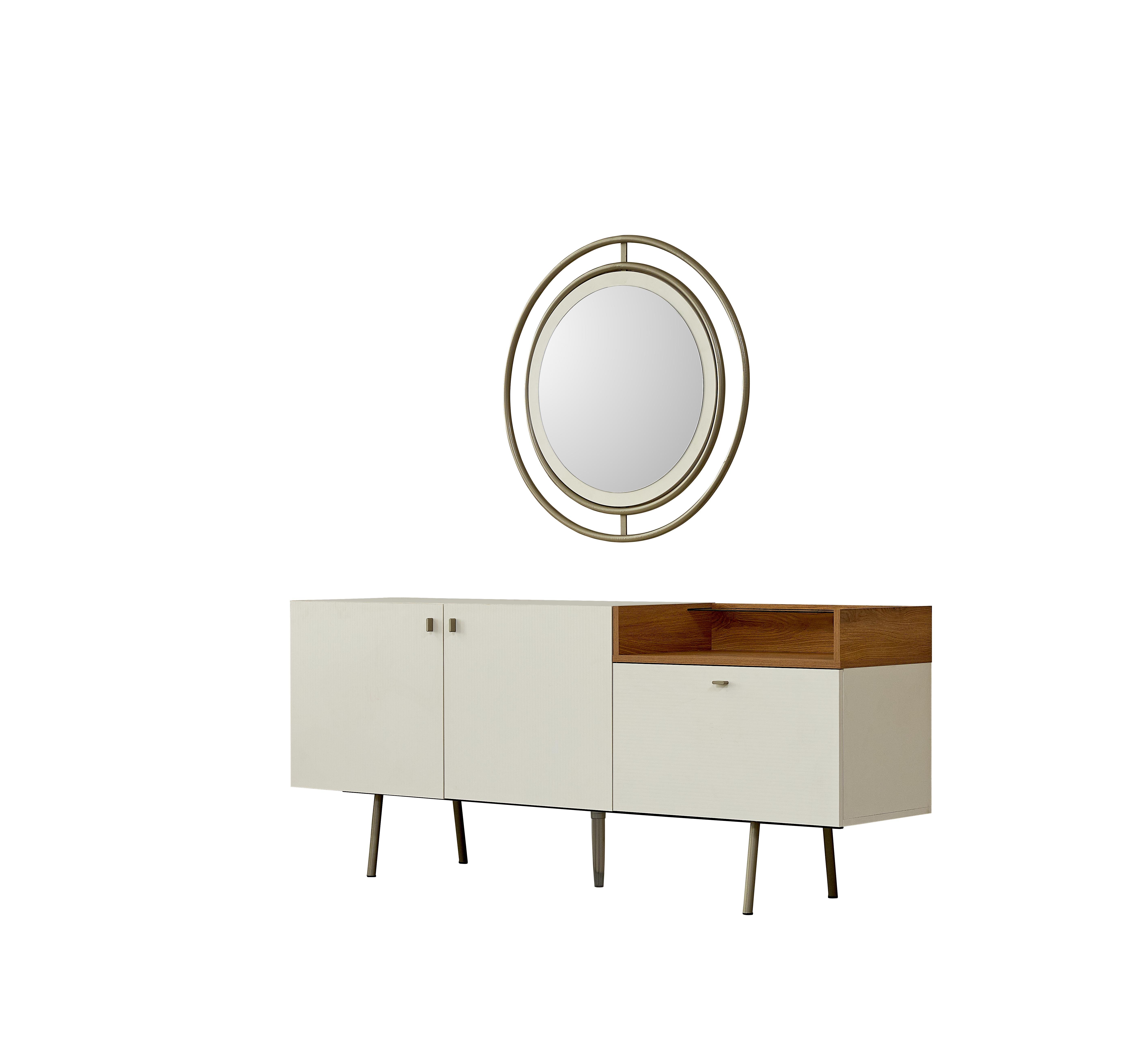 Estivo Yemek Odası Takımı, modern ve zarif tasarımıyla sofralarınıza şıklık katacak. Ay taşı ve Afrika cevizinin doğallığını, seriye özel metal kulp ve ayak detaylarıyla birleştirerek sizler için tasarladık. Konsol aynalığında düz renk ve metal çember uygulamaları ile tasarıma sofistike bir dokunuş yaparak göz zevkinizi bir üst noktaya çıkarmayı amaçlıyoruz. Geniş saklama alanları ve yüksek ayak yapısı ile işlevselliği arttırırken temizlik kolaylığını da unutmadık. Yavaşlatıcılı menteşe sistemi, konforlu bir kullanım sunarken, seriye uyumlu ahşap ve metal ayaklı sandalye seçenekleriyle takımınızı tamamlayabilirsiniz. E-1 kalite standartlarına uygun, sağlığa zararsız malzemelerle üretilen Estivo, zarafet ve fonksiyonelliği bir arada sunuyor.