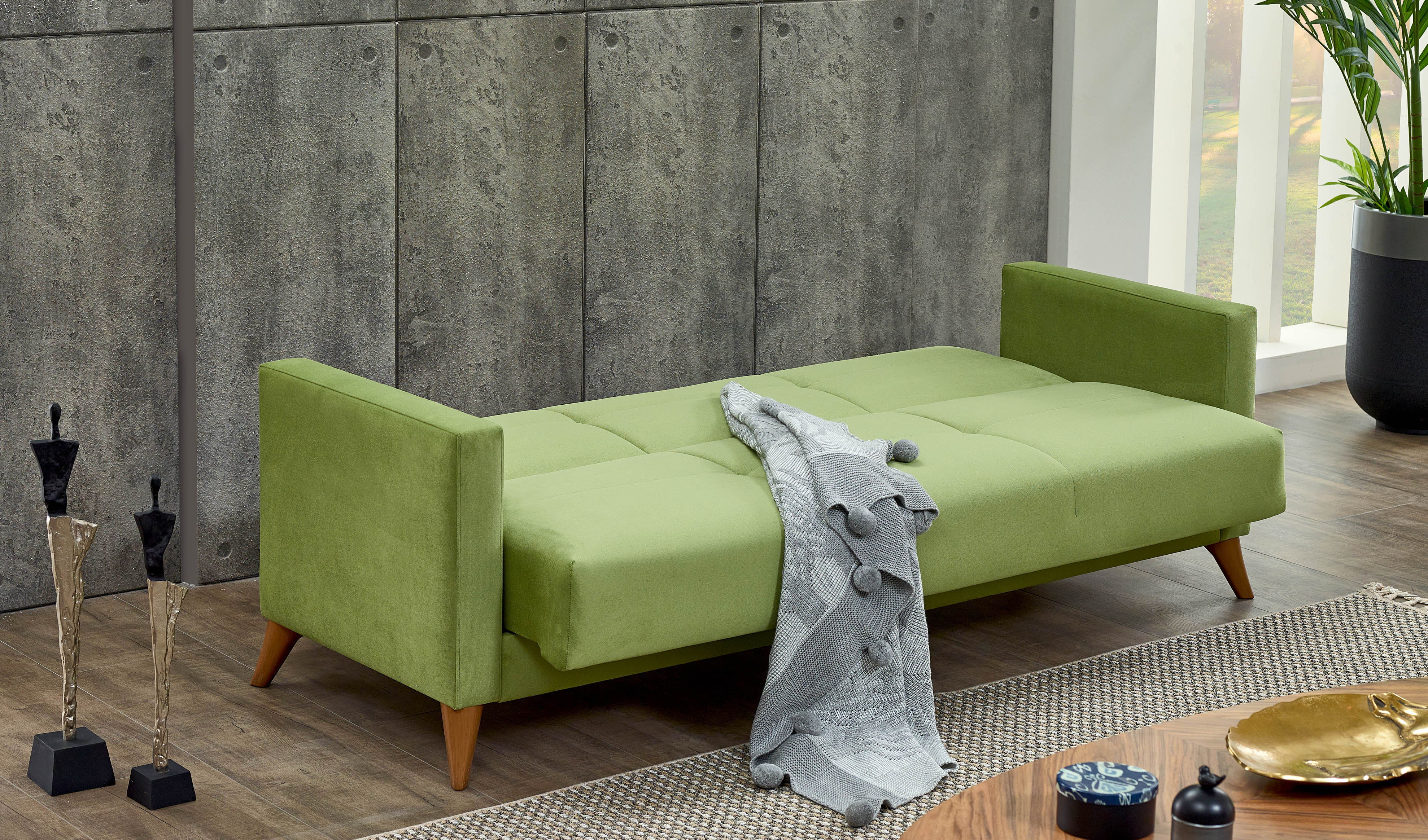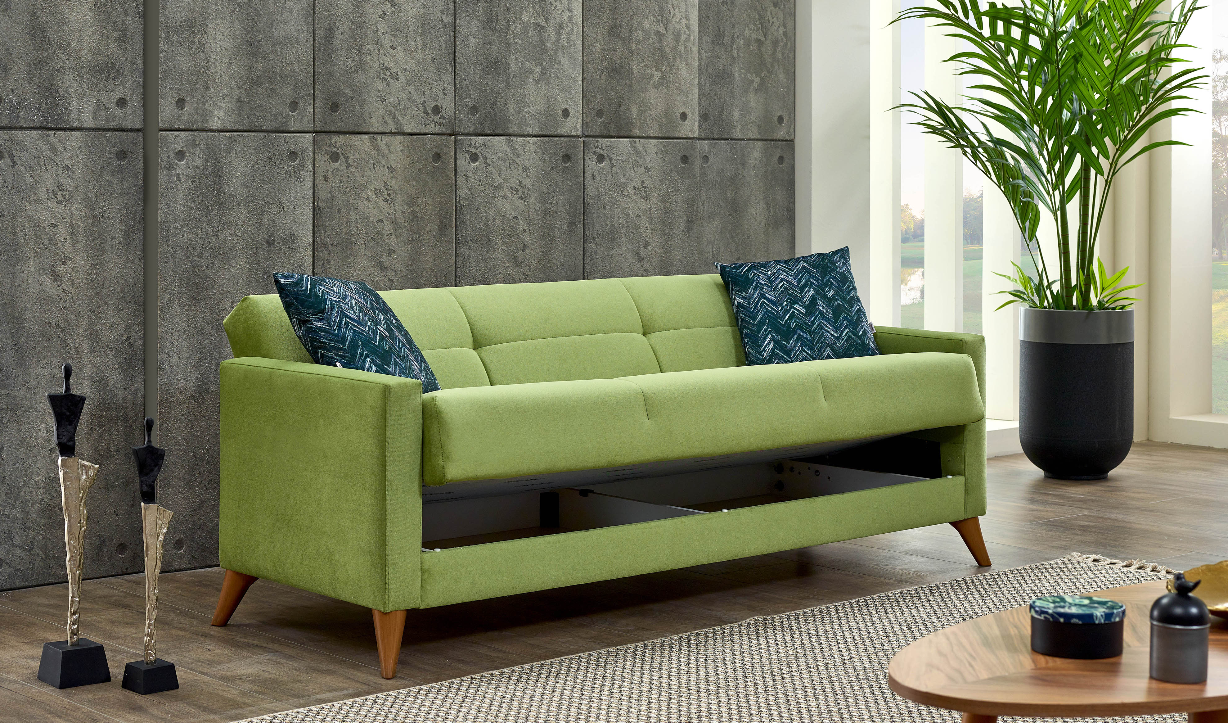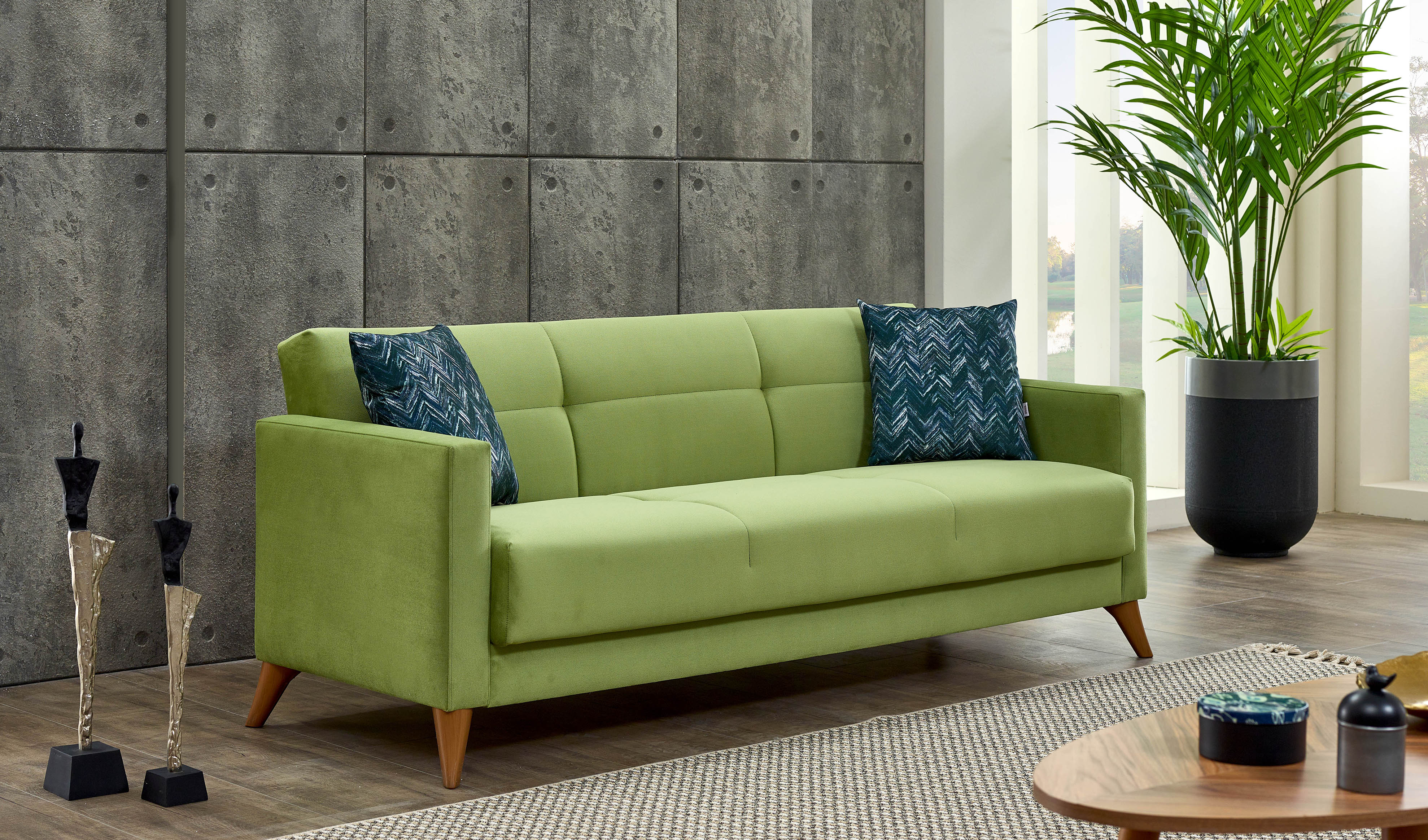 Evinize hem zarif bir oturma alanı hem de pratik bir çözüm katmak istiyorsanız, Home Koltuk Takımı tam size göre! Yaylı yapı ve süngerli kapitone detaylar, otururken size üstün bir konfor sunarken, açılır makas özelliği ile anında geniş bir yatağa dönüşerek misafirleriniz için ideal bir alan yaratıyor. Home, gündüz şık bir koltuk, gece ise konforlu bir yatak olarak evinizin her anına uyum sağlıyor.