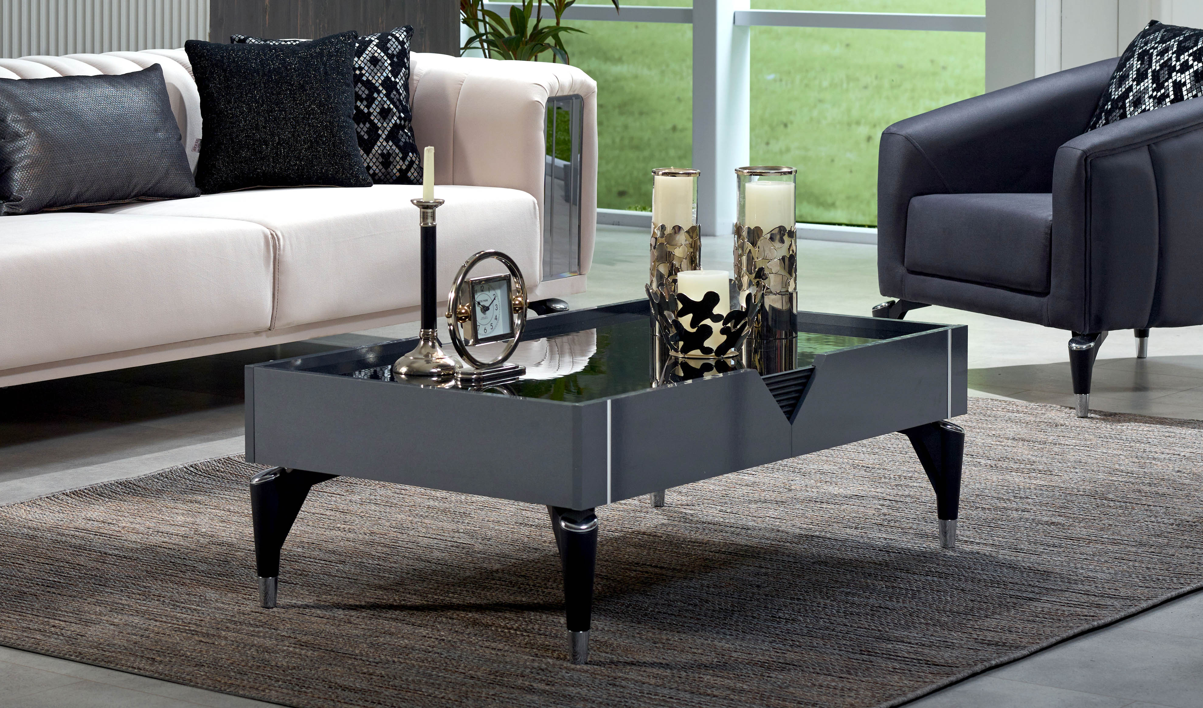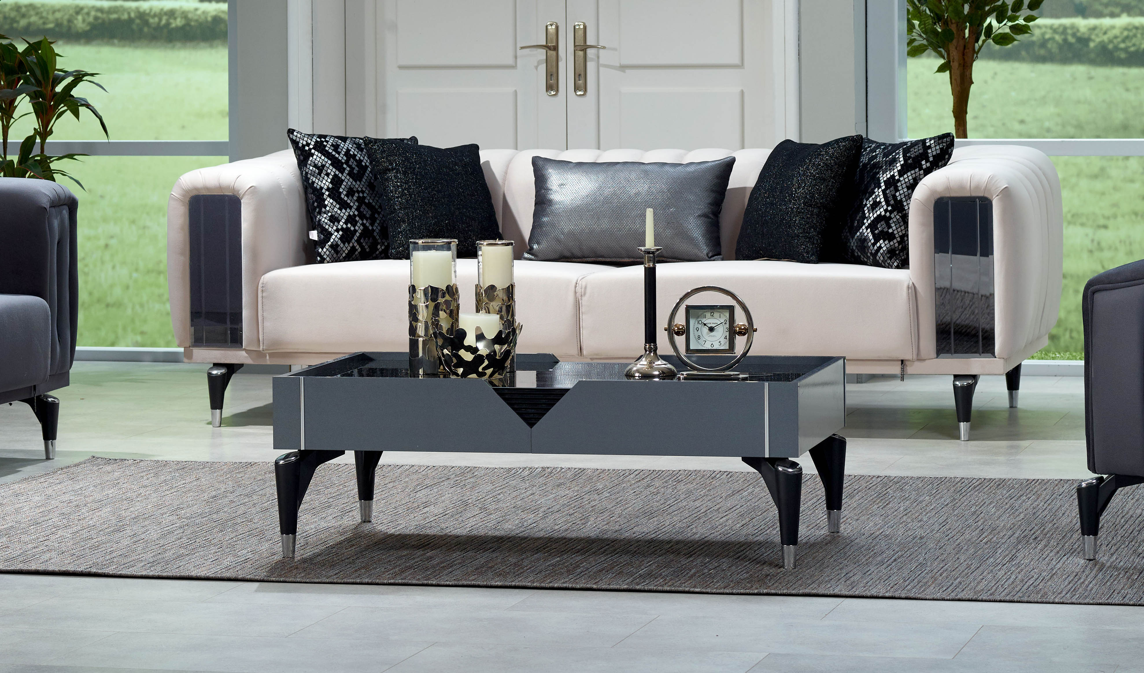 Gri ve siyahın ışıltıyla, tasarımın prestijle buluşması… Keskin çizgileri ve prestijli hatlarıyla KEOPS, lüksü ve şıklığı evinize getirecek. Siyah-metal özel tasarım ayakları, aynalı koltuk detayları, özel tasarım ışıltılı kulplarıyla KEOPS, prestijin yeni adı olacak.
