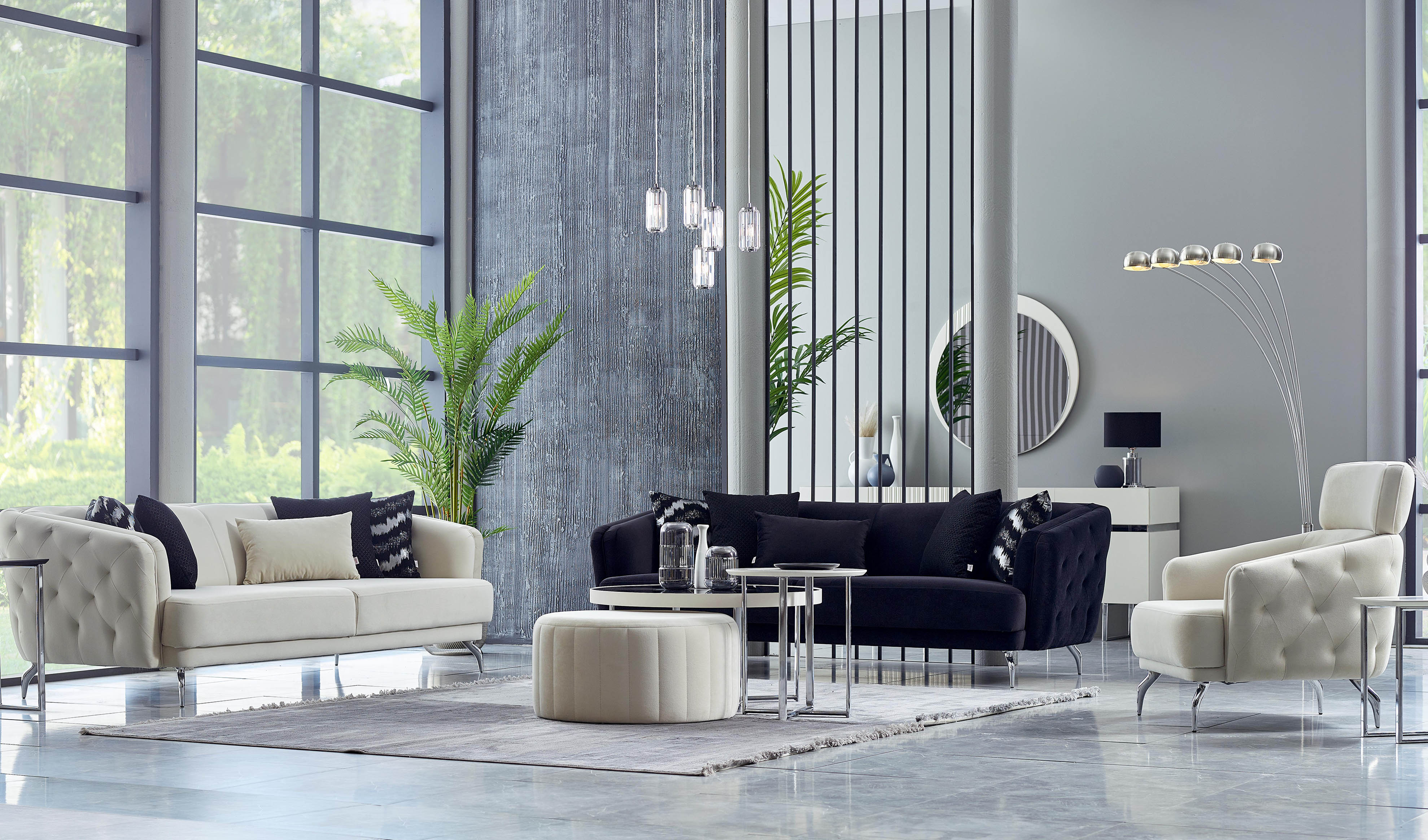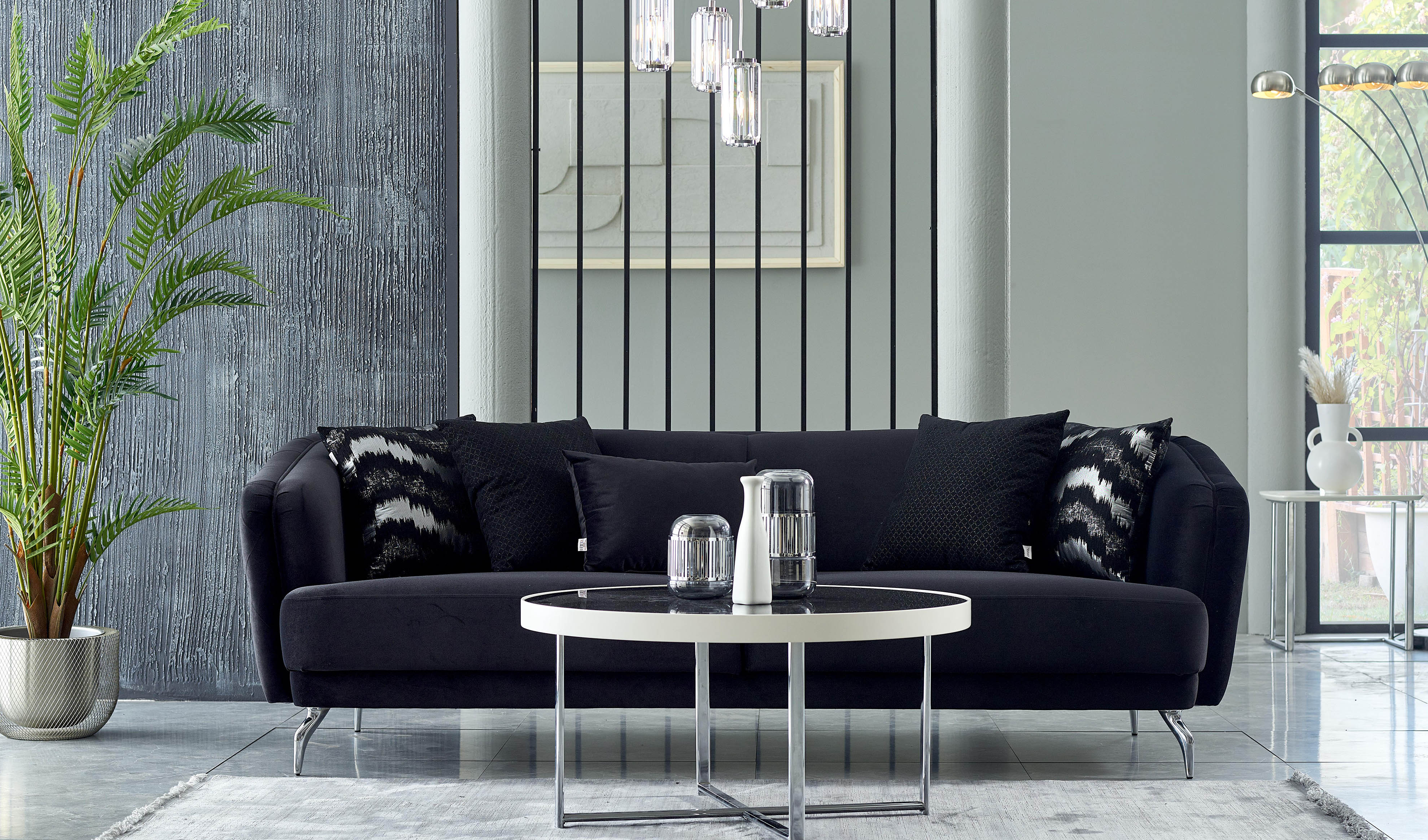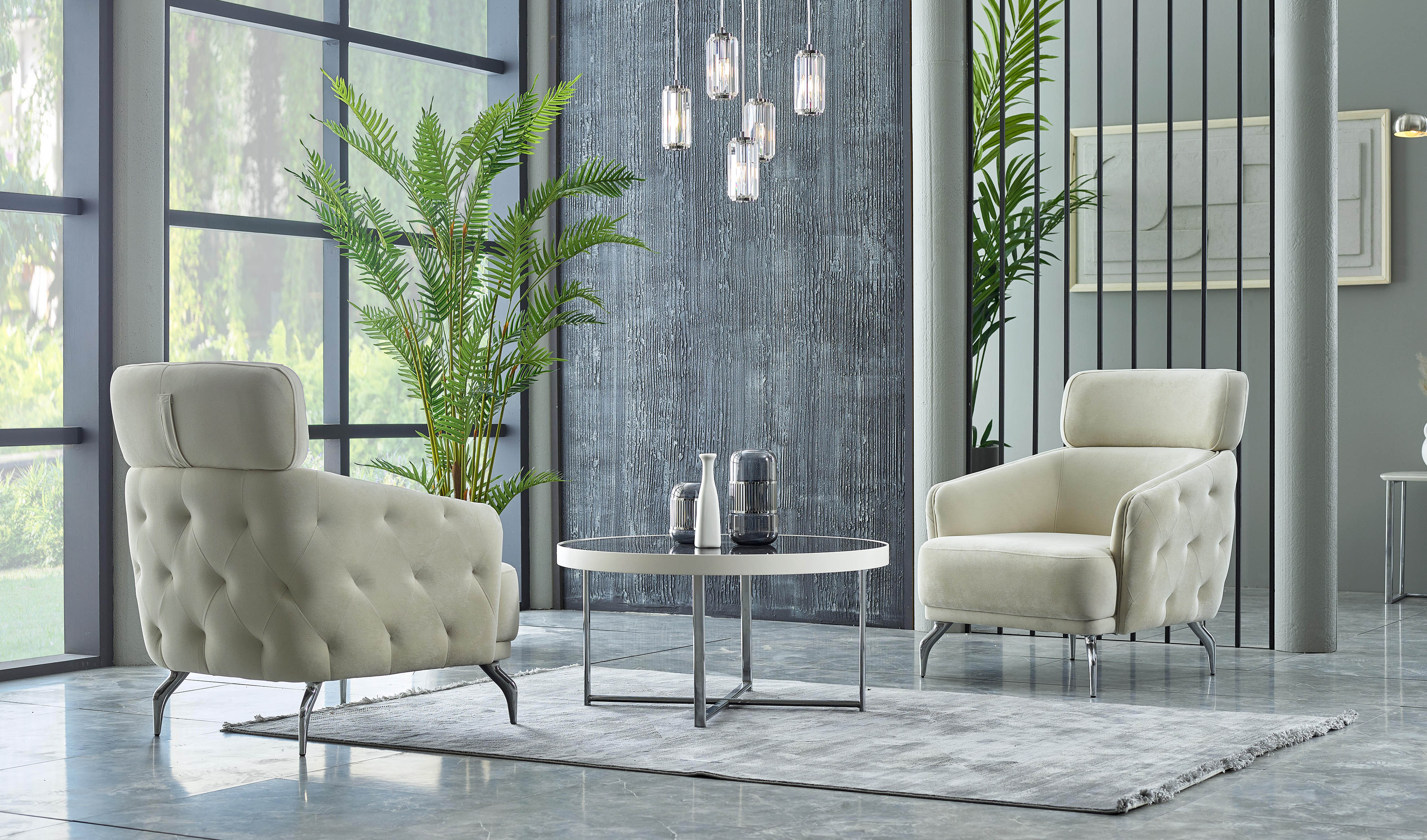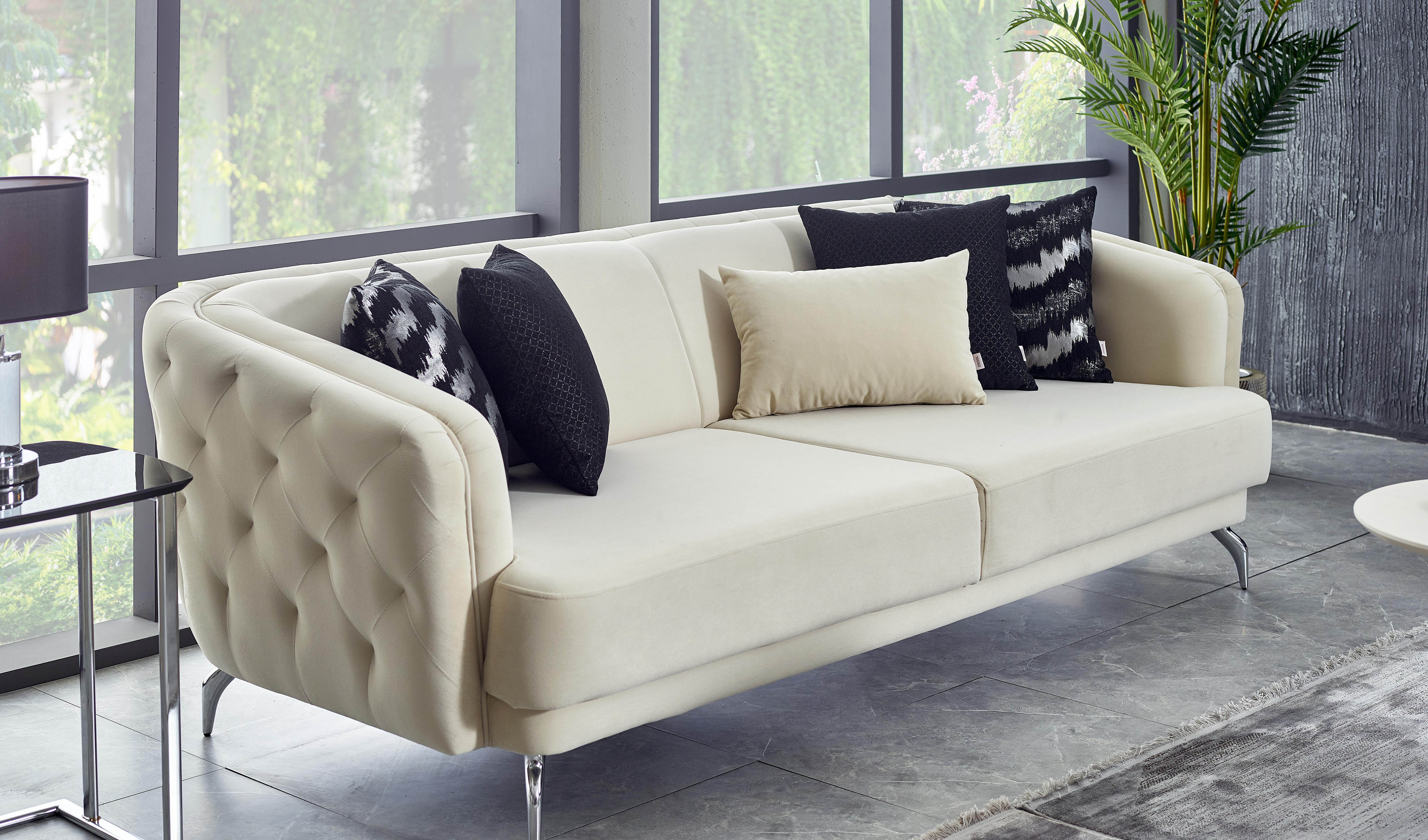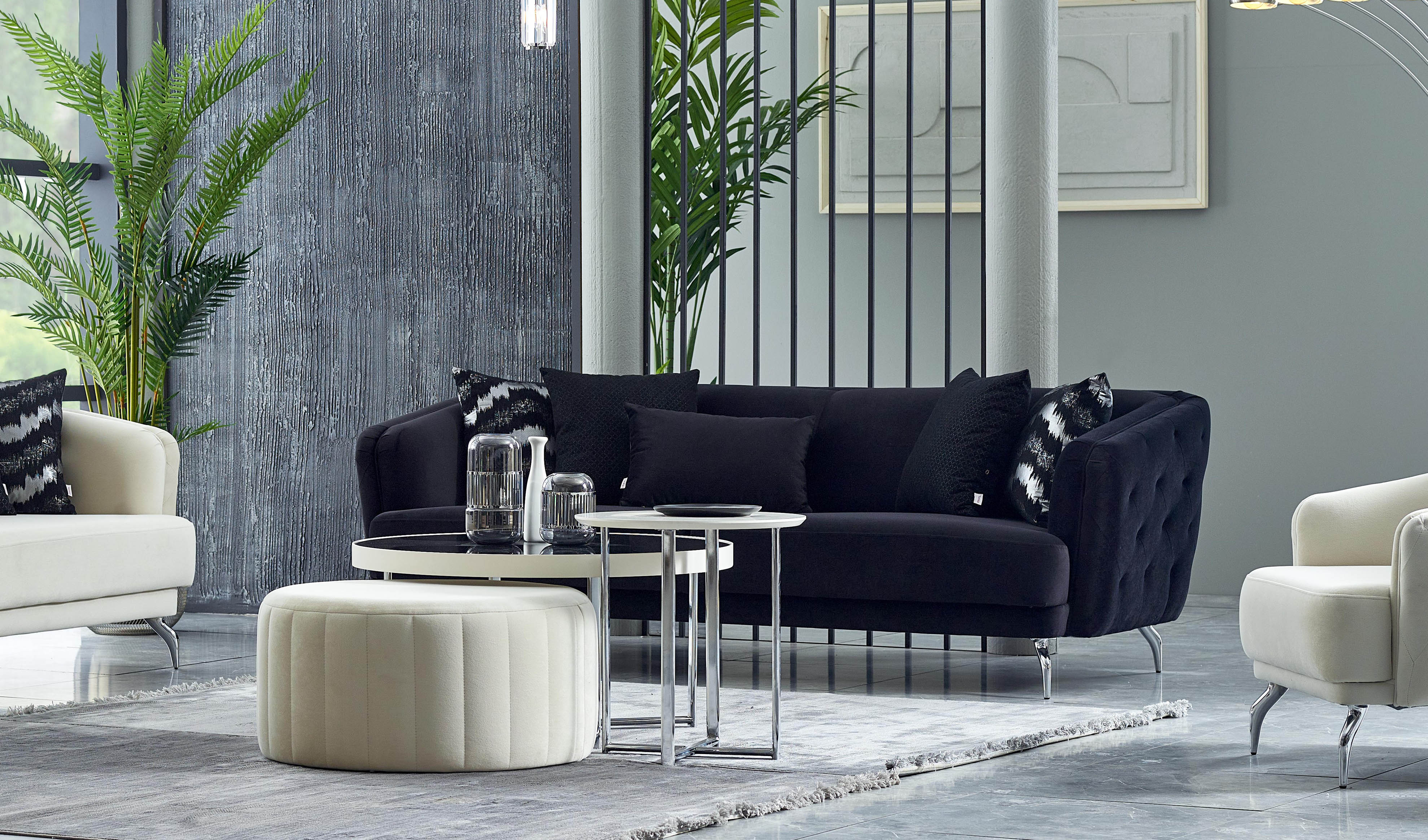 Matias Koltuk Takımı, siyah ve beyazın mükemmel uyumunu bir araya getirerek evinize modern yeni bir soluk getiriyor. Ekstra konfor sağlayan s yay uygulaması ve ergonomik sünger yapısı sayesinde maksimum rahatlık sağlarken kapitone detayları, göz alıcı renkleri ve koltukla uyumlu özel krom renk kaplama metal ayaklarıyla aradığınız şıklığı evinize taşıyor.