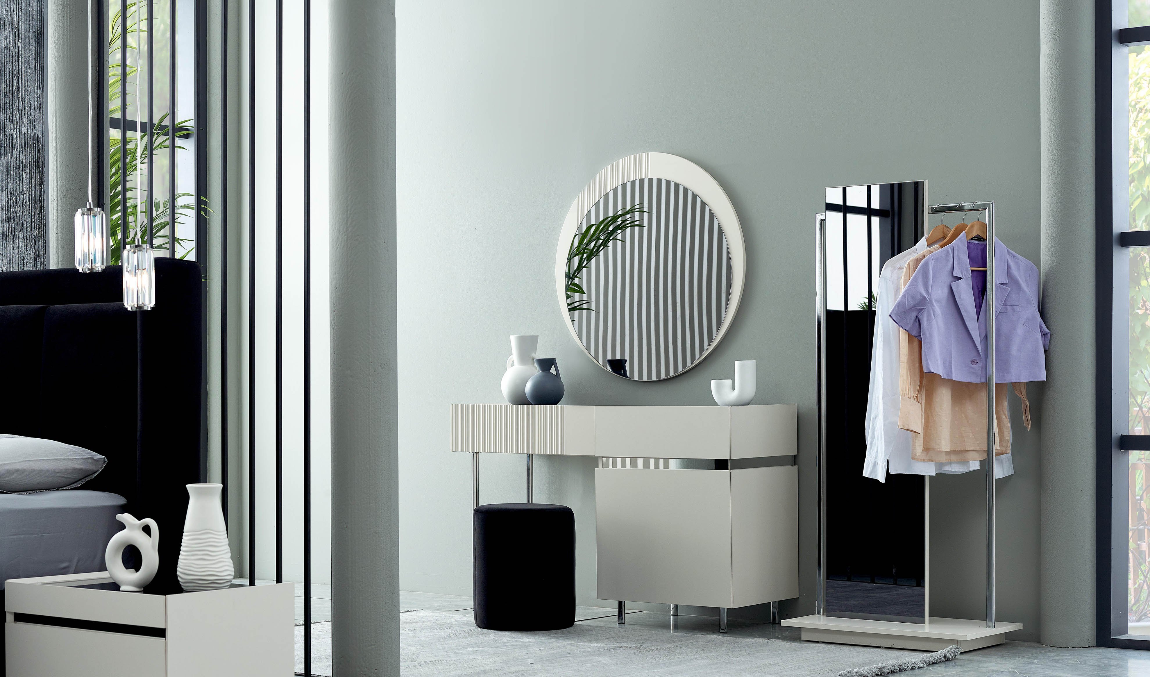 Mat aytaşı rengi ve metal detaylarıyla modern bir yaşam alanı vadediyor.