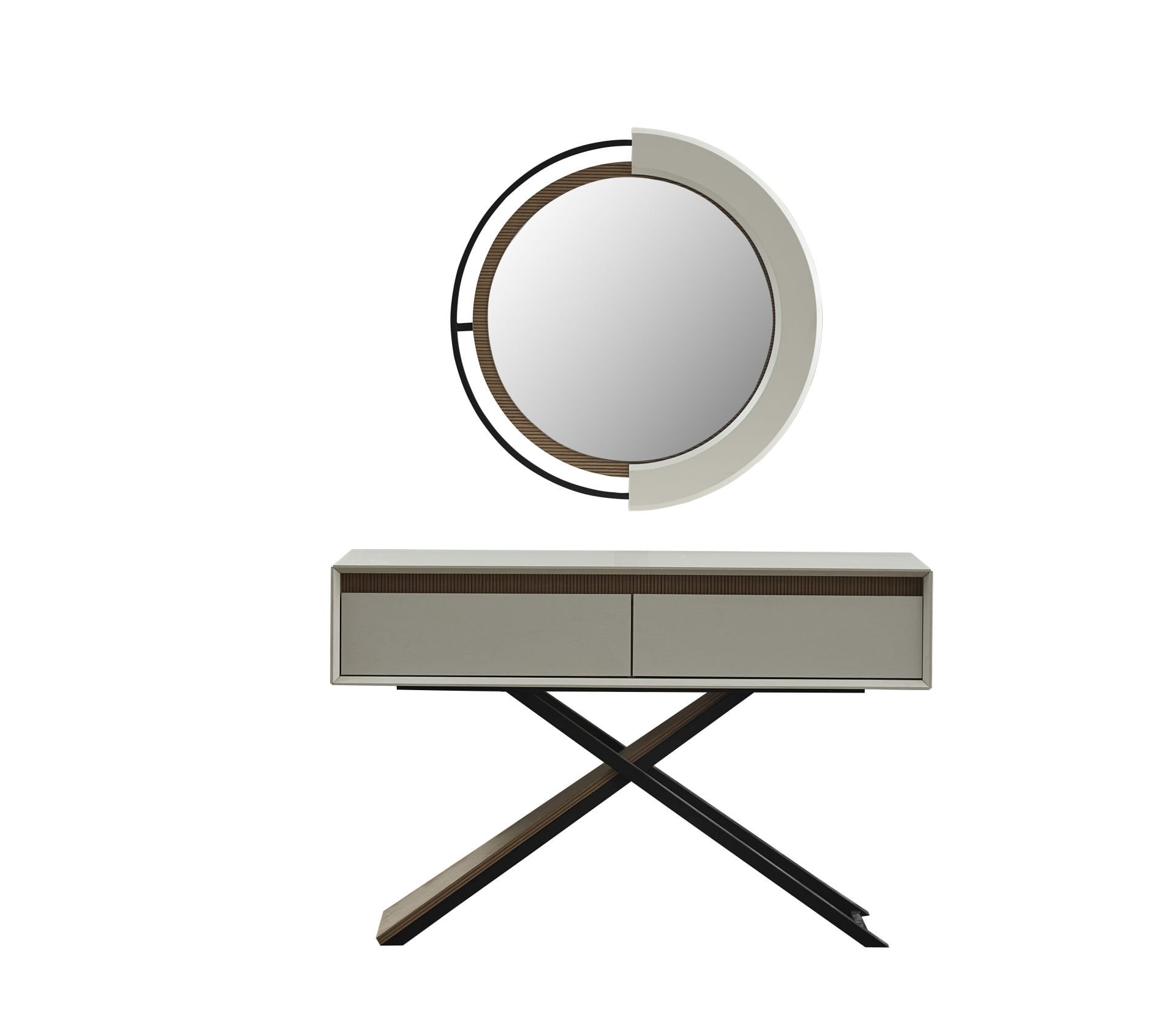 Aytaşı renkleri ve özel metal ayak tasarımı ile zarif bir duruş sergileyen bu yatak odası takımı, geniş saklama alanları, bazalı karyola ve füme ayna detaylarıyla estetiği ve işlevselliği bir araya getiriyor.
