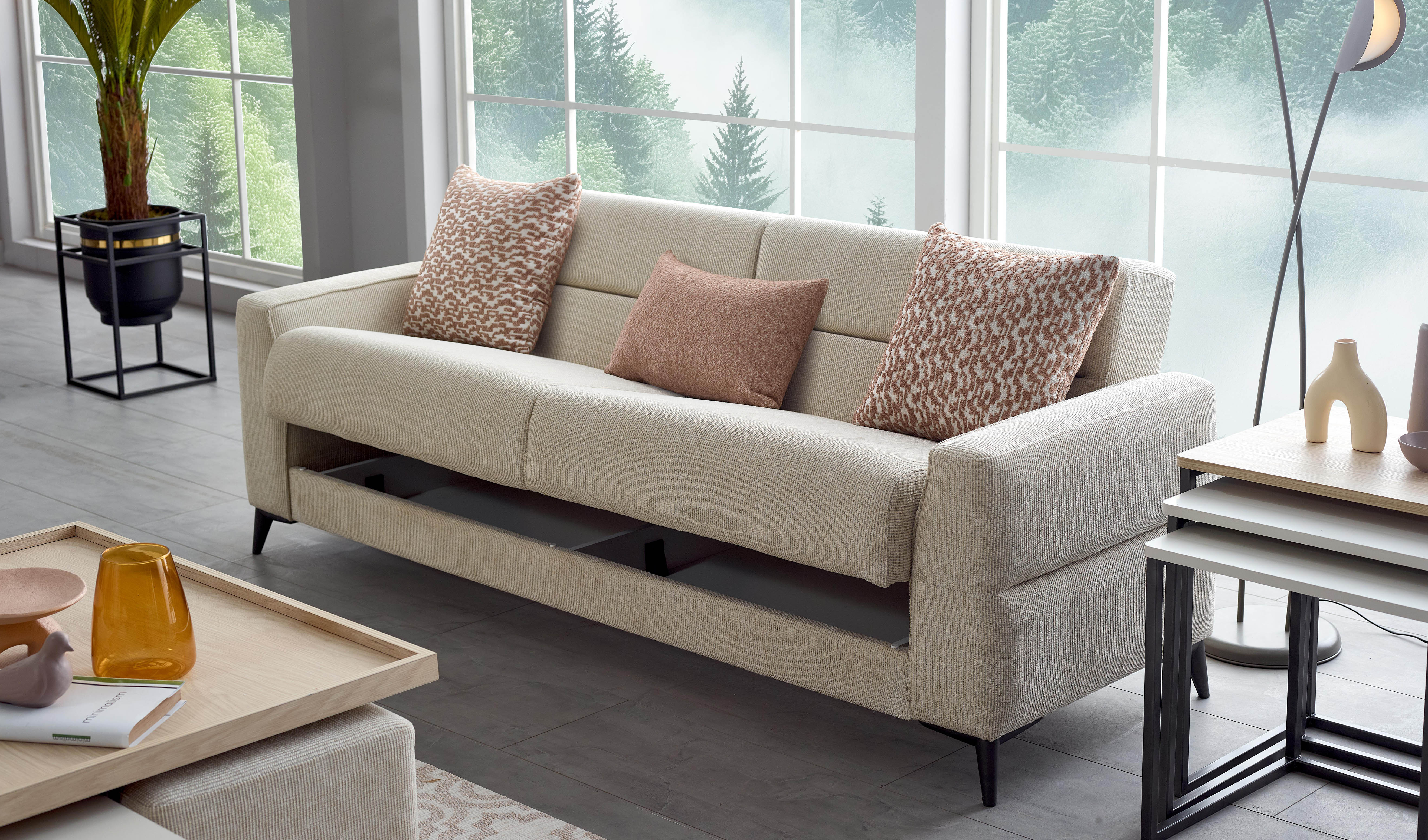 Noya, fonksiyonelliği ve estetiği bir arada sunarak yaşam alanlarınıza değer katıyor. Sıfır açılır makas mekanizması, kullanım kolaylığı sağlarken konforlu bir yatak alternatifi sunar. Dokuma kumaşı, hem şık bir dokunuş ekler hem de kolay temizlenebilir yapısıyla pratik bir kullanım sağlar. Kumaşda renk alternatifleri, dekorasyon zevkinize göre özelleştirme imkanı sunarken, desenli kırlent uygulaması ile takımın görselliği zenginleşir. Sırtta yarma detayı, tasarıma modern bir şıklık katarken, sandıklı yapısı ekstra depolama alanı sunarak düzenli bir yaşam alanı oluşturmanıza yardımcı olur.