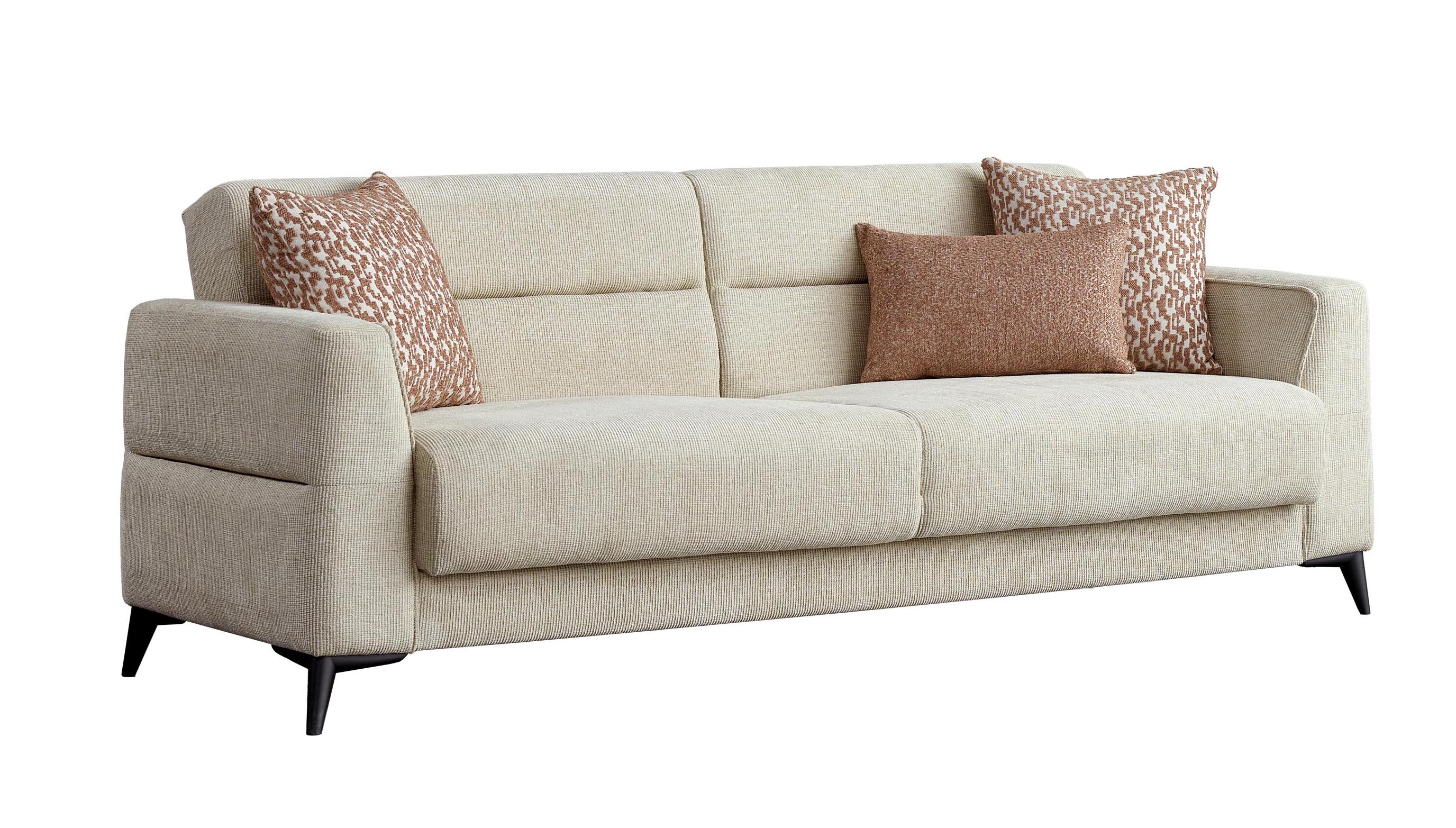 Noya, fonksiyonelliği ve estetiği bir arada sunarak yaşam alanlarınıza değer katıyor. Sıfır açılır makas mekanizması, kullanım kolaylığı sağlarken konforlu bir yatak alternatifi sunar. Dokuma kumaşı, hem şık bir dokunuş ekler hem de kolay temizlenebilir yapısıyla pratik bir kullanım sağlar. Kumaşda renk alternatifleri, dekorasyon zevkinize göre özelleştirme imkanı sunarken, desenli kırlent uygulaması ile takımın görselliği zenginleşir. Sırtta yarma detayı, tasarıma modern bir şıklık katarken, sandıklı yapısı ekstra depolama alanı sunarak düzenli bir yaşam alanı oluşturmanıza yardımcı olur.