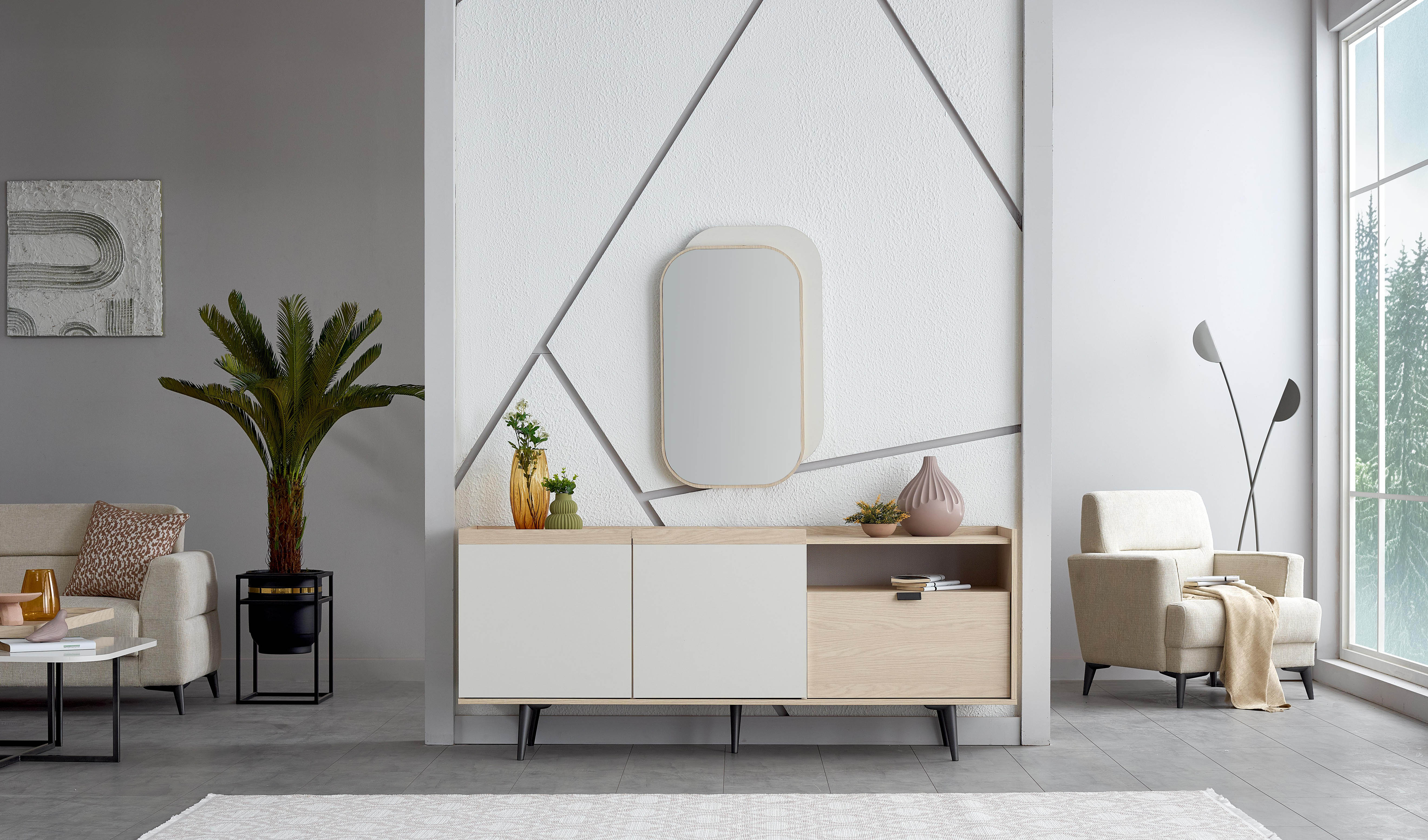 Yemek odanızda modern bir şıklık ve sıcak bir atmosfer arıyorsanız, Noya Yemek Odası ile sofralarınız bir başka güzel! Modern ve şık tasarımı, pusula ve bony renk kombinasyonu ile odanıza zarif bir dokunuş katarken, ister ailece keyifli akşam yemekleri yiyin, ister misafirlerinizi ağırlayın – Noya her anınıza eşlik ediyor. Seriye özel formda kulp tasarımı ve seriye özel formda ayak tasarımı, her detayıyla fark yaratıyor; düz renk ayna uygulaması ise odanıza ferahlık ve derinlik katıyor.