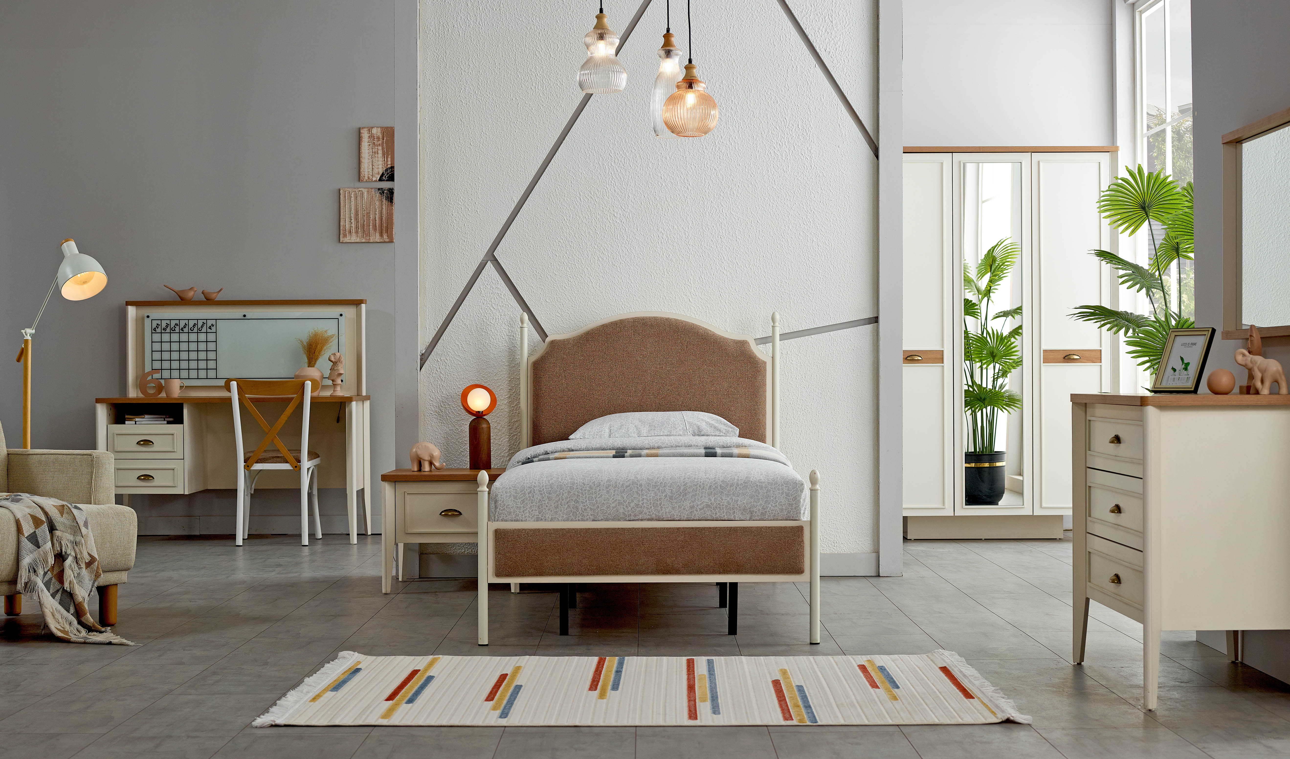 Fonksiyonellikte sınır tanımıyor! Çalışma masası alt blokta USB’li, kablosuz şarj özellikli modül uygulaması, gençlerin teknolojik ihtiyaçlarına modern bir çözüm sunarken, çalışma masası üst blokta not tutmak için baskılı, aydınlatmalı cam uygulaması, hem pratik hem de yaratıcı bir çalışma alanı yaratıyor. Karyola başucunda ve ayakucunda metalli ahşap topuz uygulaması ile silinebilir kumaş uygulaması, şıklığı ve kullanım kolaylığını birleştiriyor. Tüm modüller zengin bir kullanım alanı sunmakta, böylece eşyalarınızı düzenlemek ve odanızı kişiselleştirmek artık çok kolay. Üstelik üründe çevreye ve insan sağlığına zararsız E-1 kalite standartlarında kanserojen madde içermeyen malzemeler kullanıldı, böylece tarzınızı güvenle yaşayabilirsiniz.