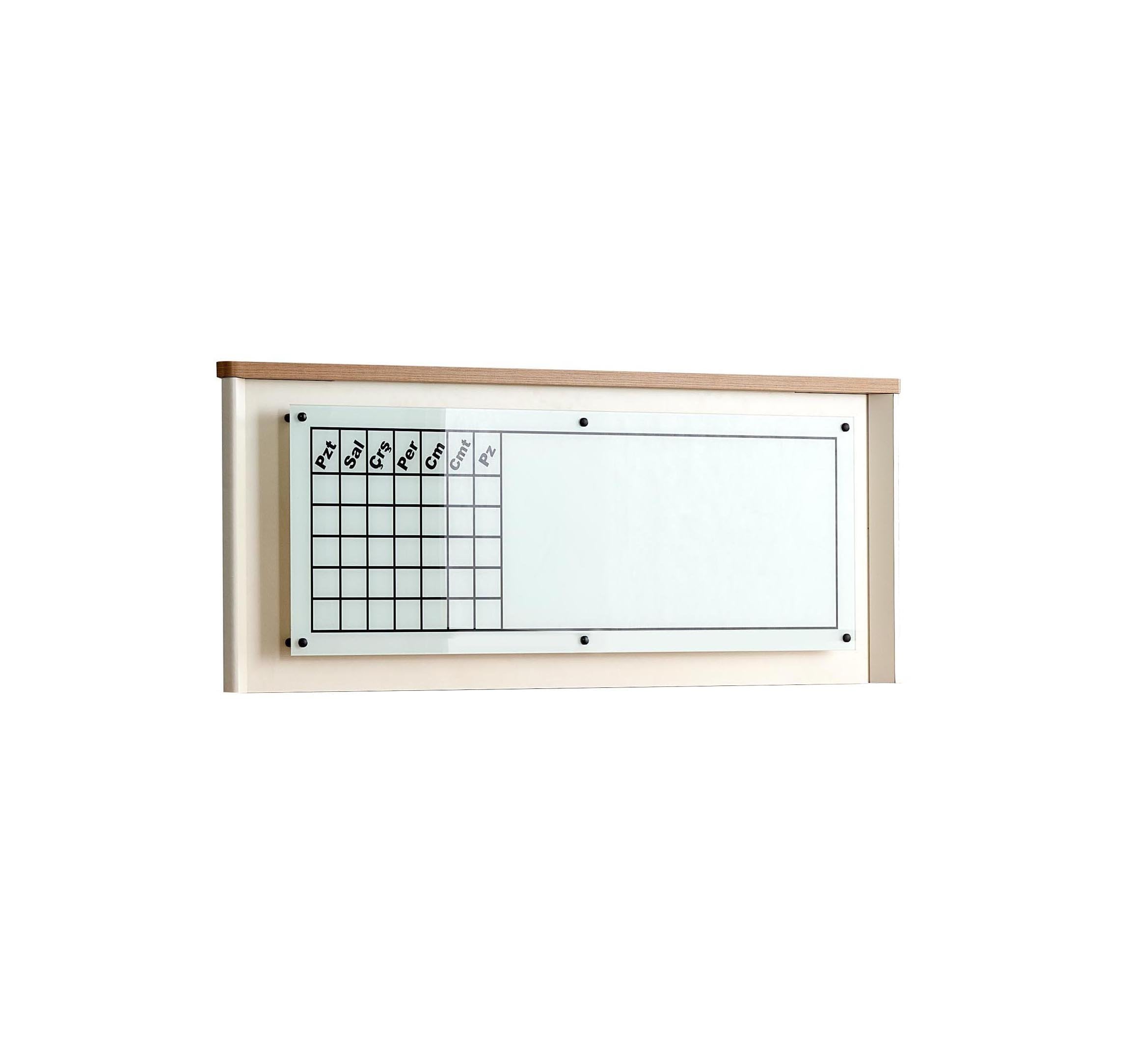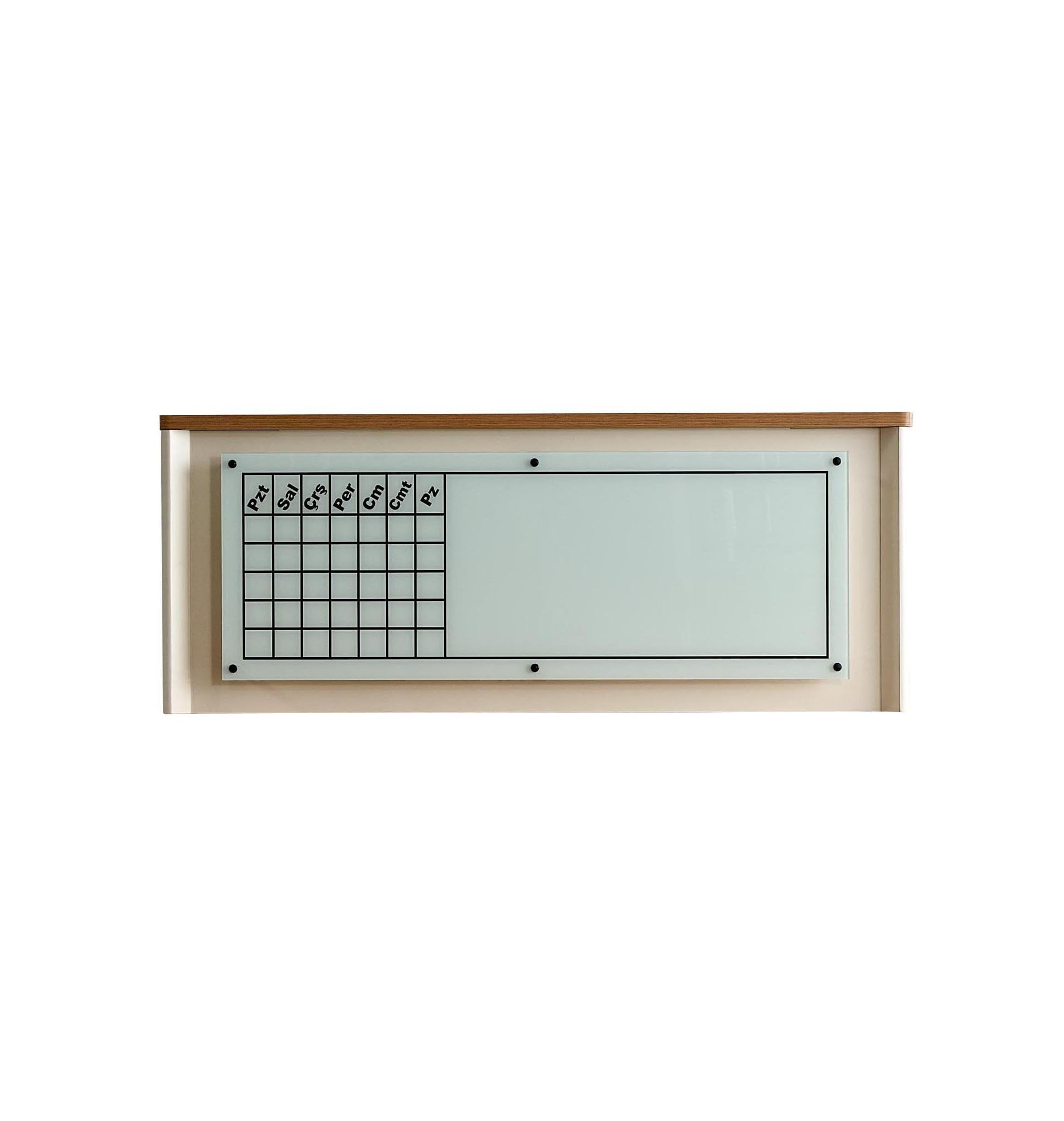 - Çalışma masası üst blokta not tutmak için baskılı, aydınlatmalı cam uygulaması
