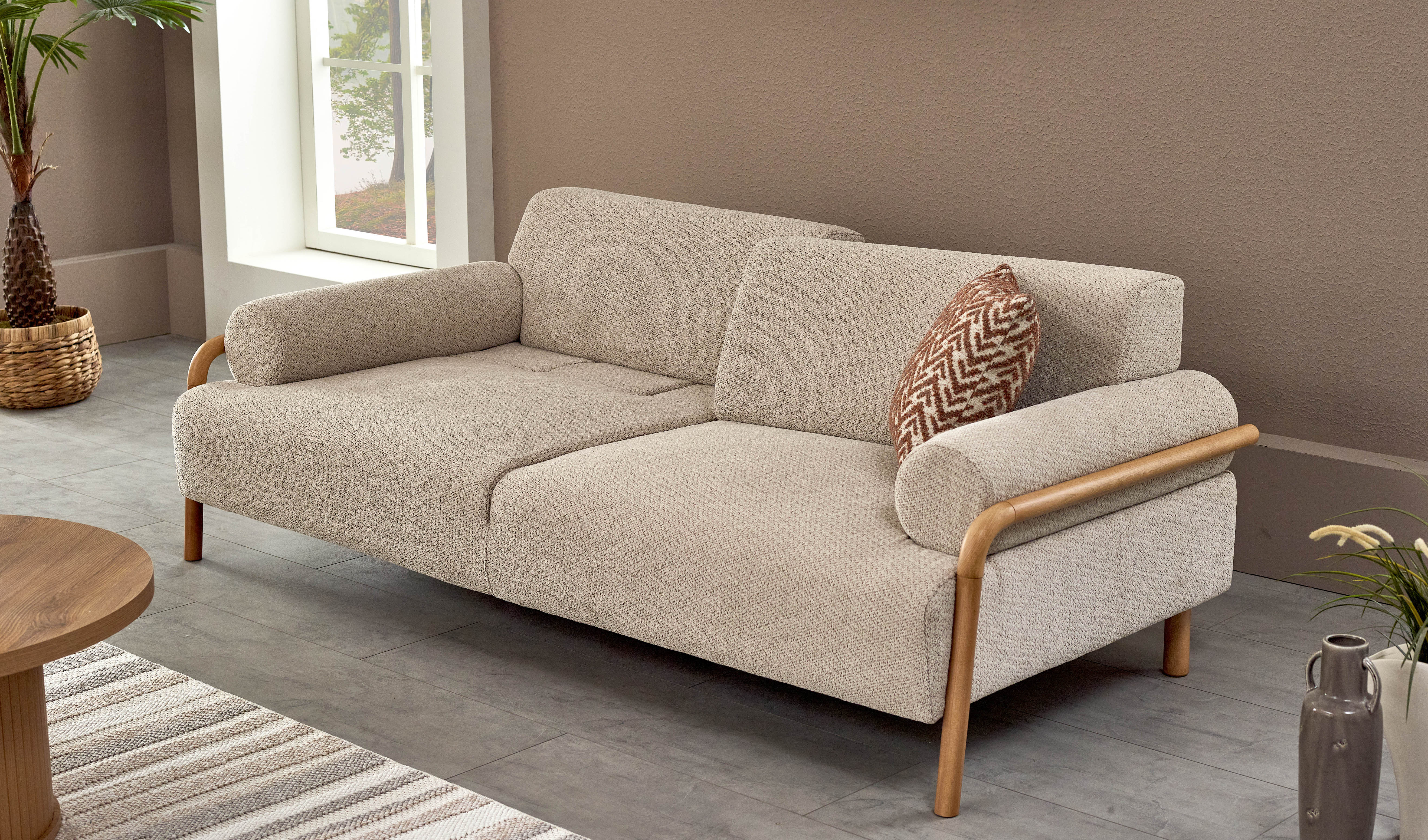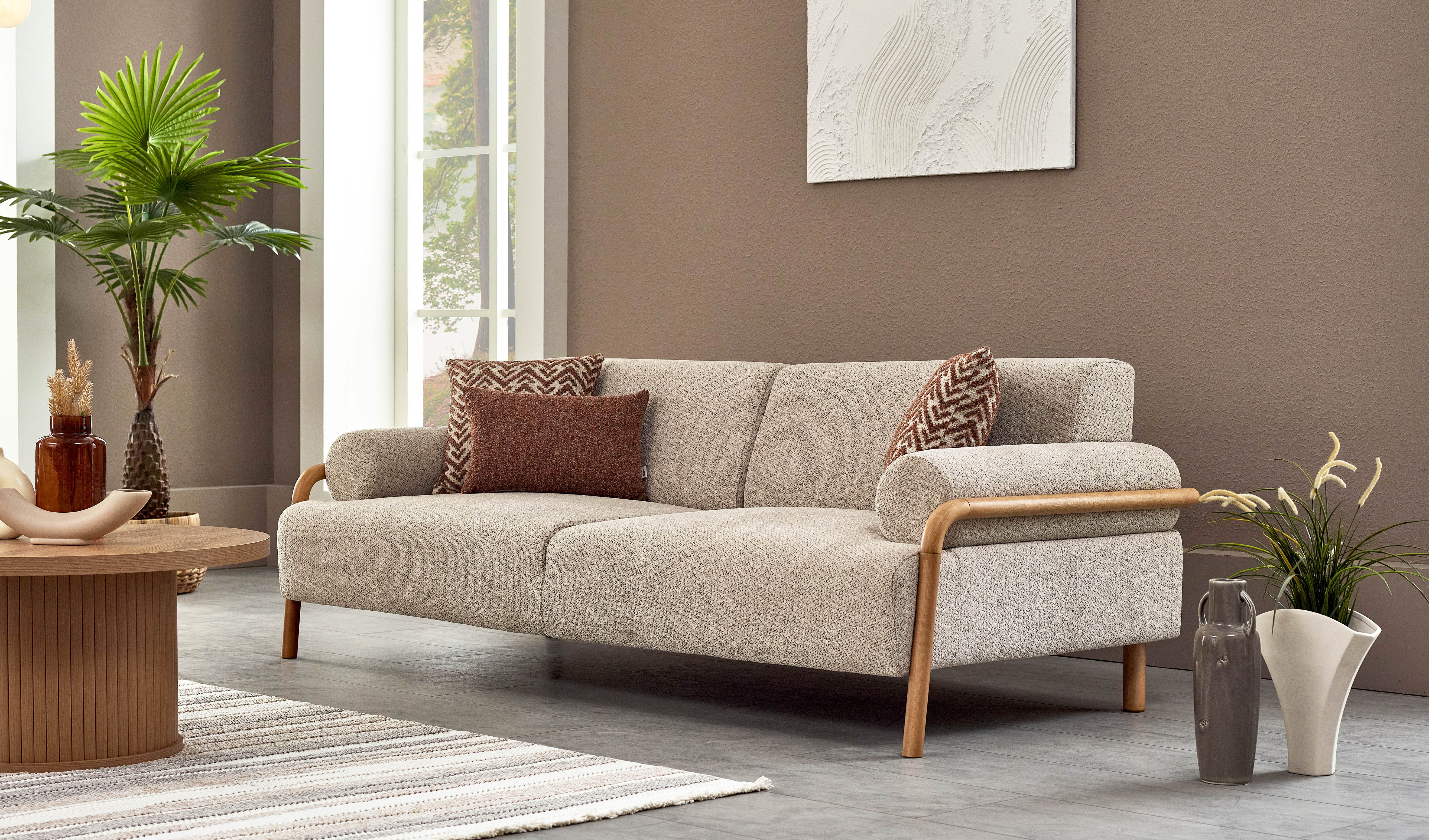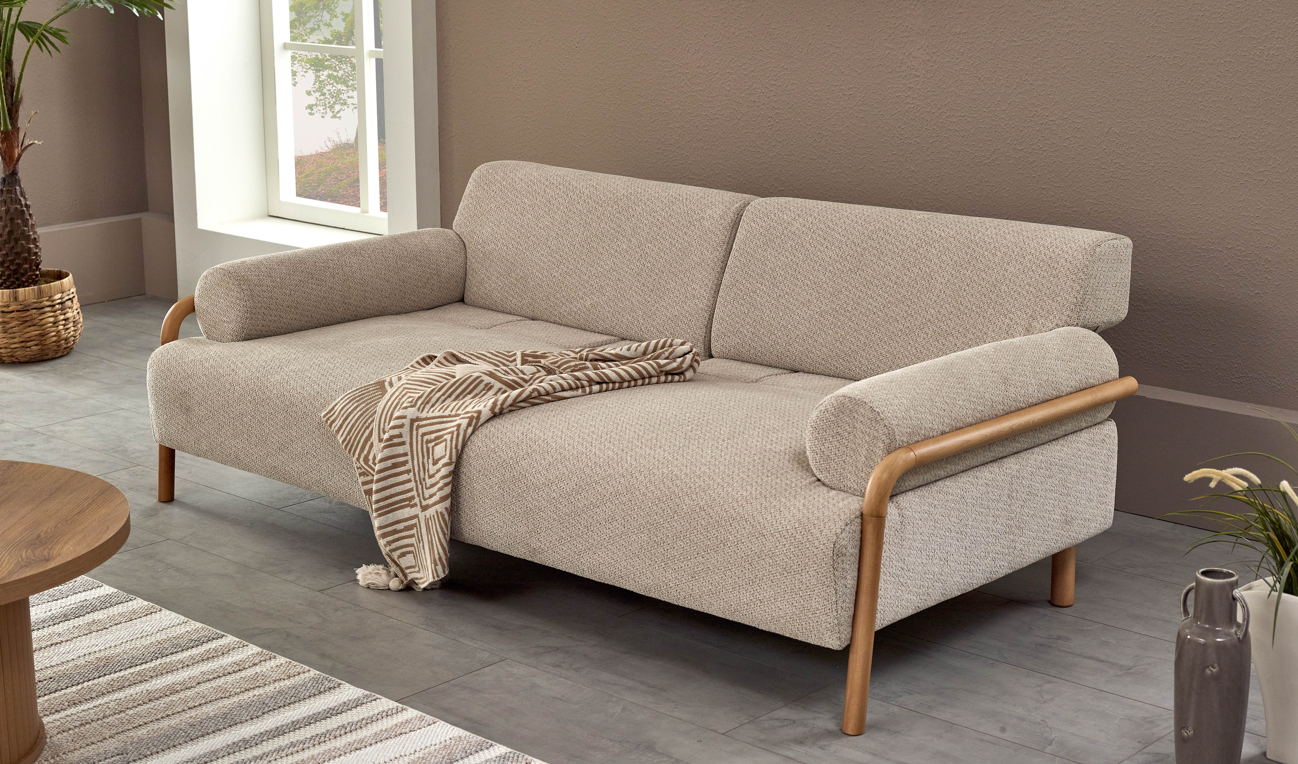 Evinize hem modern bir zarafet hem de bohem bir ruh katmak istiyorsanız, Pergomo Koltuk Takımı tam size göre! Modern bohem stil ile tasarlanan bu takım, sıradanlıktan uzak bir estetik sunarken, sırtta geriye açılır mekanizma ile yatak olabilme özelliği sayesinde gündüz şık bir koltuk, gece ise konforlu bir uyku alanı oluyor. Ahşap kol ve ayak detayları, doğal bir sıcaklık katarken, yaşam alanlarınıza özgün bir karakter kazandırıyor.