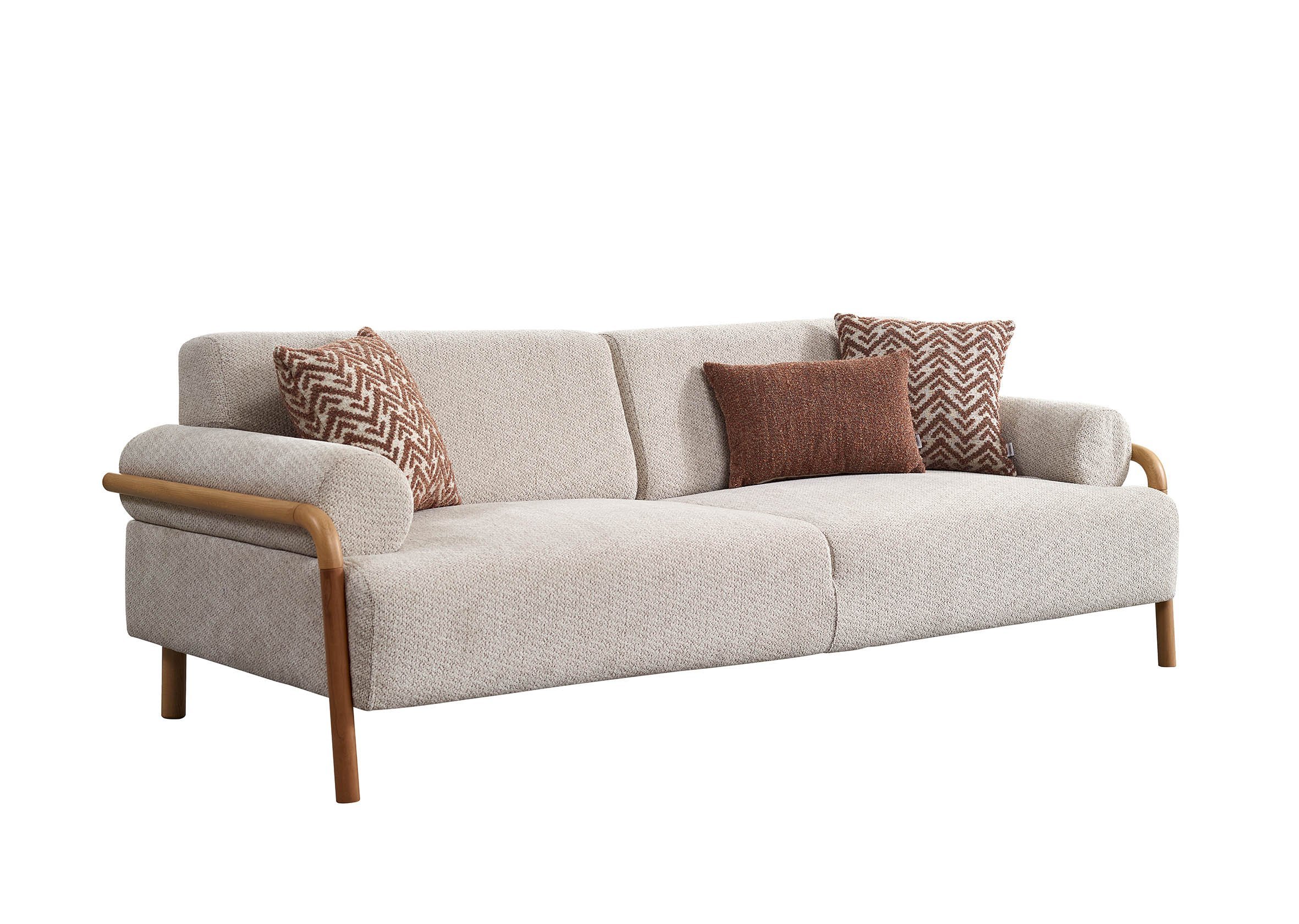 Ahşap kol ve ayak detayları, doğal zarafeti ve sıcaklığı evinize getirirken; dekoratif kırlentler ve zengin renk seçenekleri, yaşam alanınızda kişisel tarzınızı ön plana çıkarıyor. Şönilli, kolay temizlenebilir kumaş dokusu, estetik görünümüyle dikkat çekerken, S yaylı ve yüksek yoğunluklu katmanlı sünger yapı, uzun süre boyunca üstün konfor sağlamanın garantisi oluyor.